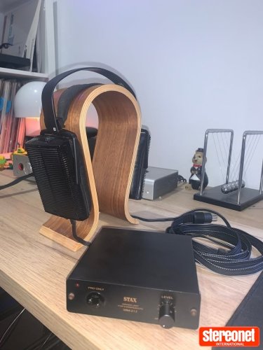 STAX SR-2020 combo (a.k.a. Stax Basic System 2) comprised of the SR-202 Earspeakers and the SRM-212 Energizer/Amplifier. This combo is one of the most budget friendly ways to enter into the electrostatic HiFi headphone world.
