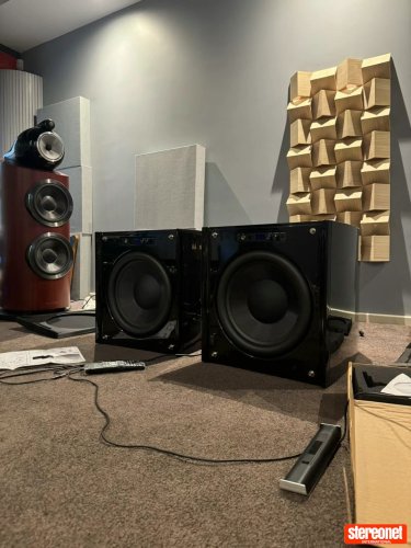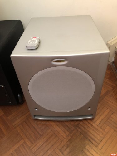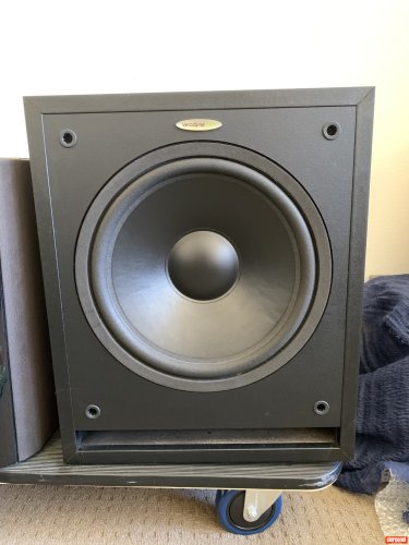 15 inches forward firing woofer. Still has the original manual, packing and carton.