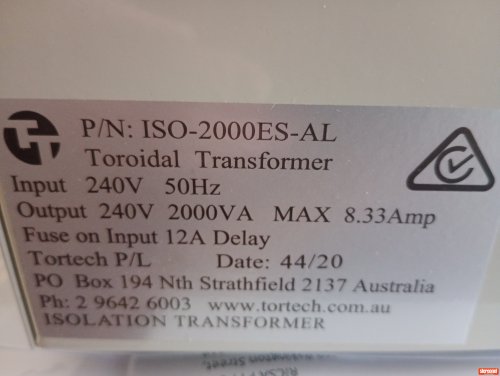 The fair market price for a new Tortech 2000-ES (ISO-2000ES-240V) 2000VA Isolation Transformer is approximately AUD 600–700.