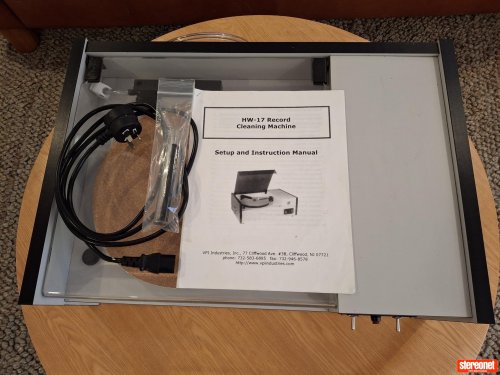 VPI HW-17 record cleaner. Very good condition and everything functioning as it should. The cosmetic condition is also very good and it comes with manual, spare vacuum wand, and power cable.