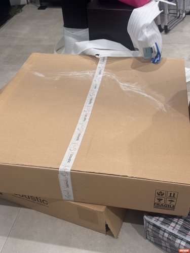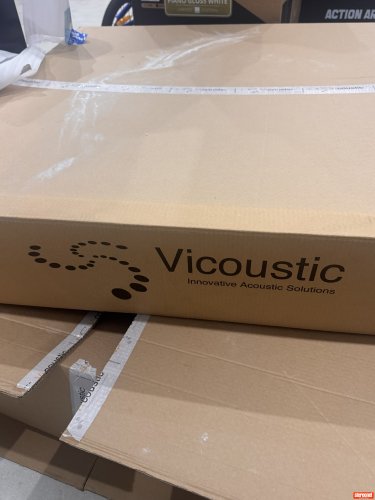Brand new in unopened box, 1mefre round panels at 3.5cm thick. Made a big difference in my setup. The top end is smooth now and centre stage is locked in. Able to drive speakers louder without system compromising . Looks gorgeous and it’s magnetic. All you need is 1 screw with washer on ceiling and it will stick on via the magnet. Love this as if need to clean can take them down, also only 1 hole makes it easier if u ever move out and need patching. It’s black in colour and absorbs from both sides. Quality product. There are 4 units in 1 box