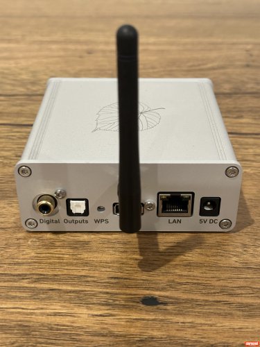 Described as an elegant, compact German-made unit (10.7 x 4 x 10.7 cm, 300g) with galvanically isolated outputs, emphasizing premium construction for a pure streaming transport. No major complaints on physical quality.