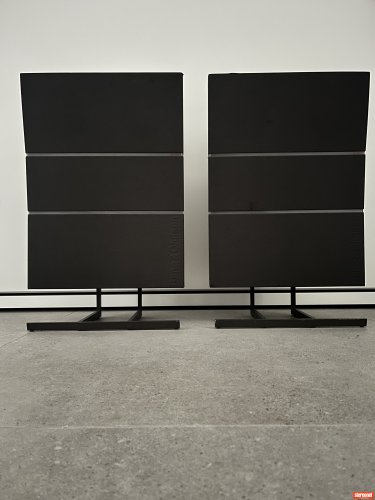 They come with the specific B&O metal stands..... which I believe makes them a bit of a catch. And for their age, they are in pretty damn good condition, with only minor repairs to some the grey cover. No structural issues as far as I can tell.
