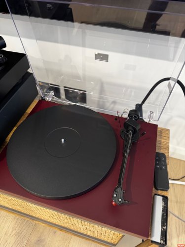 The original MDF platter has been upgraded with a new Acryl-It E platter. The original Ortofon OM10, has also been upgraded to the Ortofon Stylus 20