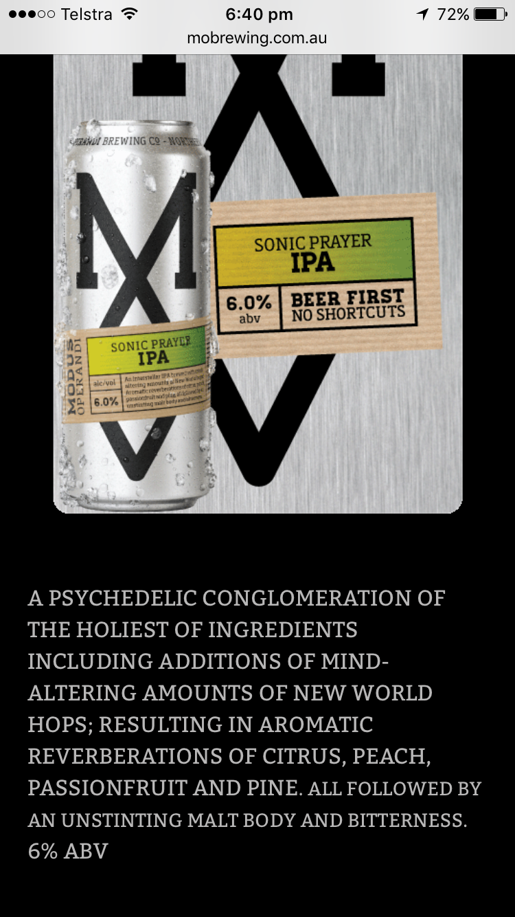 I think it is the most 'chuggable' IPA I have tried, two pint cans after a good days work is really good, it is strange to find an IPA @ 7 something percent that is chuggable and thirst quenching on a warm arvo after work.