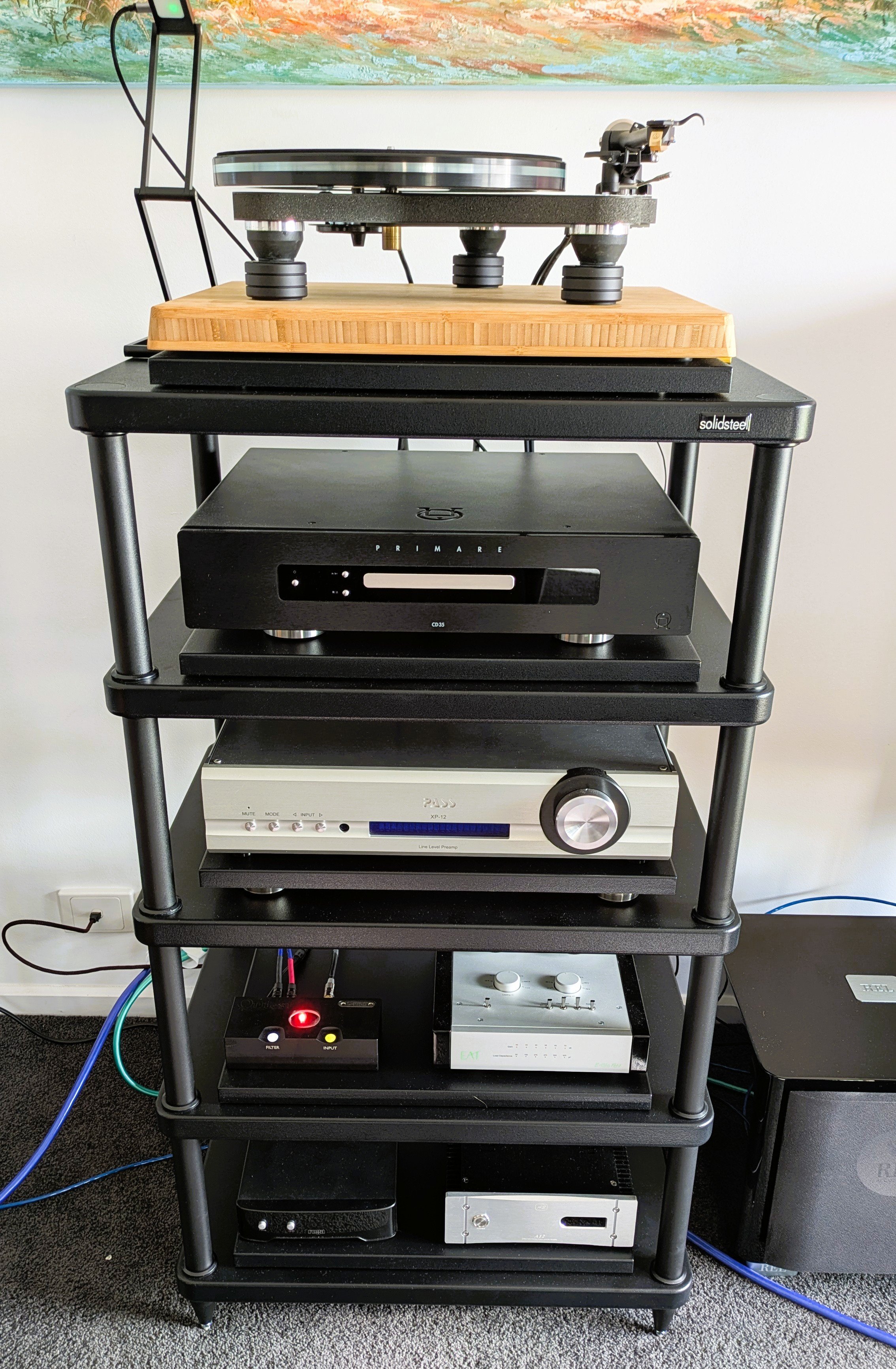 Just a quick story regarding Solidsteel and me, after adding a Solidsteel rack I thought it sounded better, lower noise floor etc, but……. The music seemed to lose its sparkle, it sounded clearer but flat, which I thought must be the way it should sound. Well after a few years of chasing fixes elsewhere in my system to no real avail, I added the Stack Audio isolation and the sparkle was back in a big way, so a better rack doesn’t always provide a better sound/ experience.