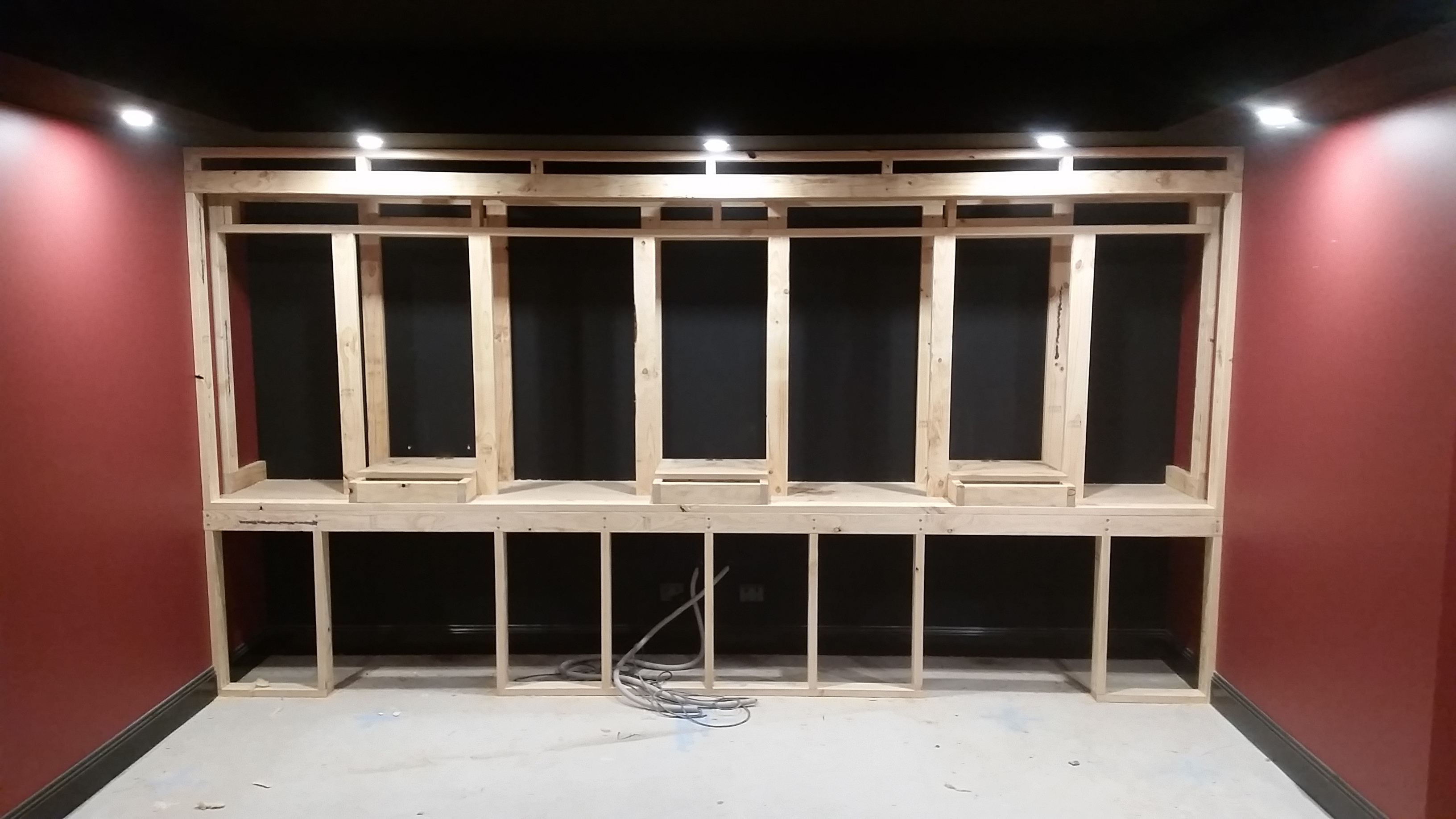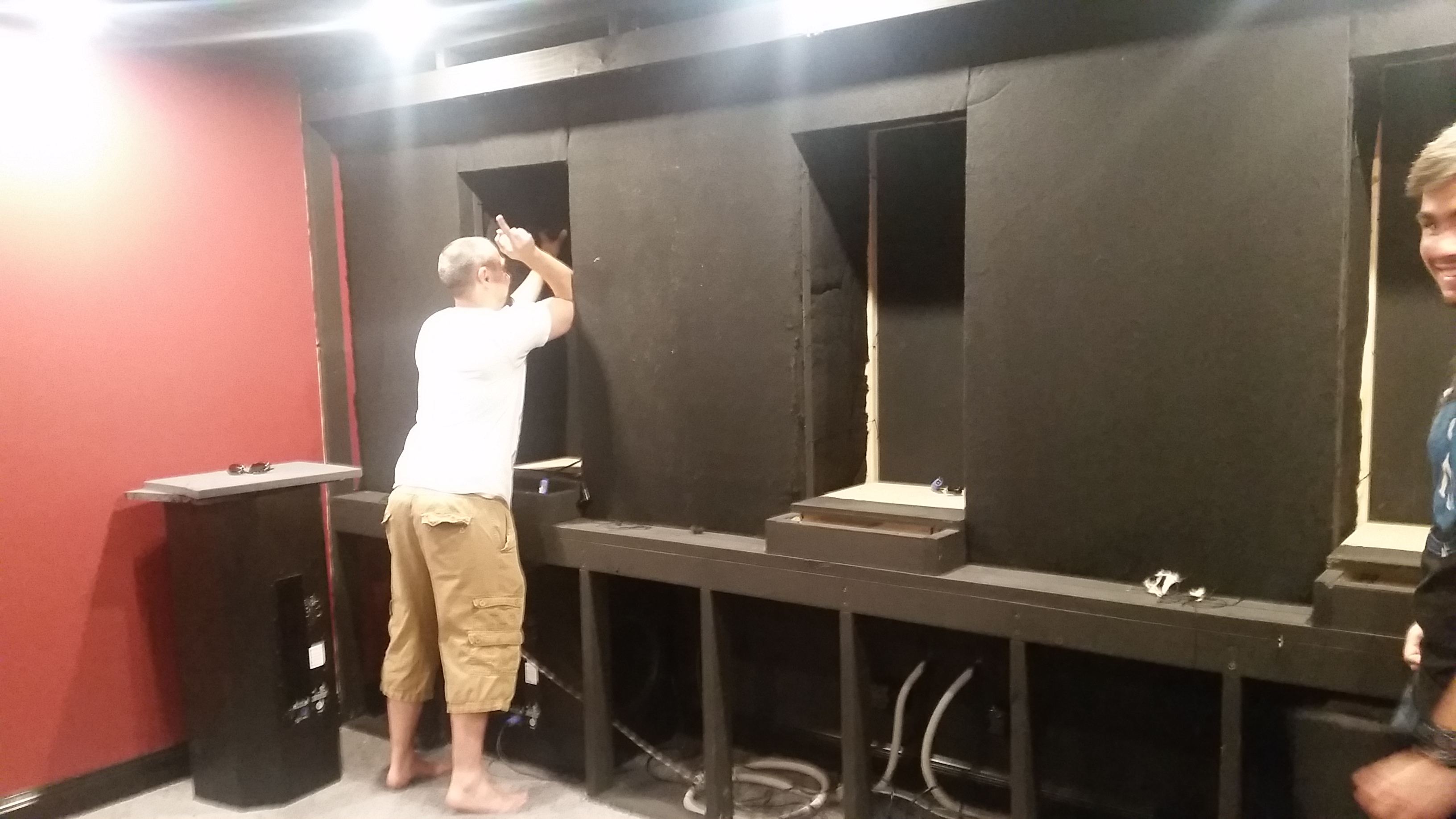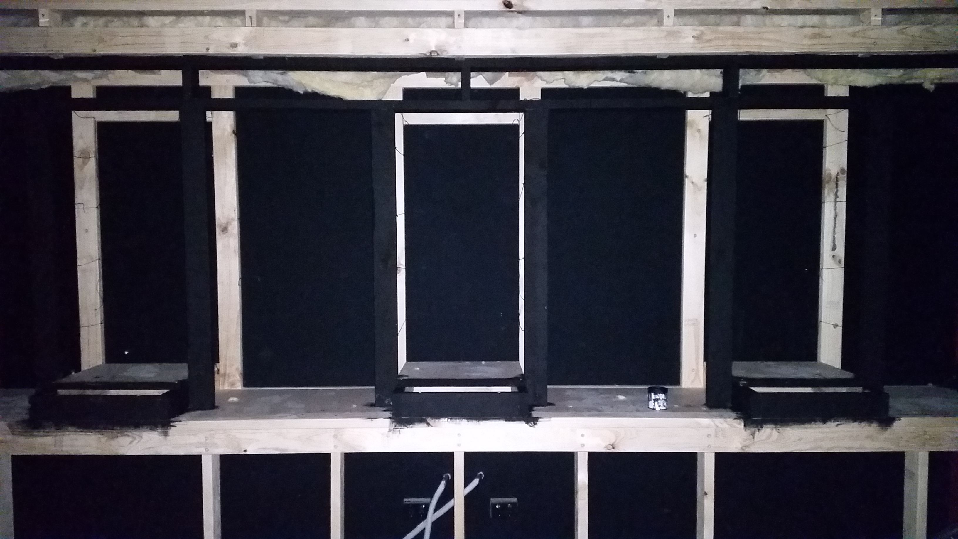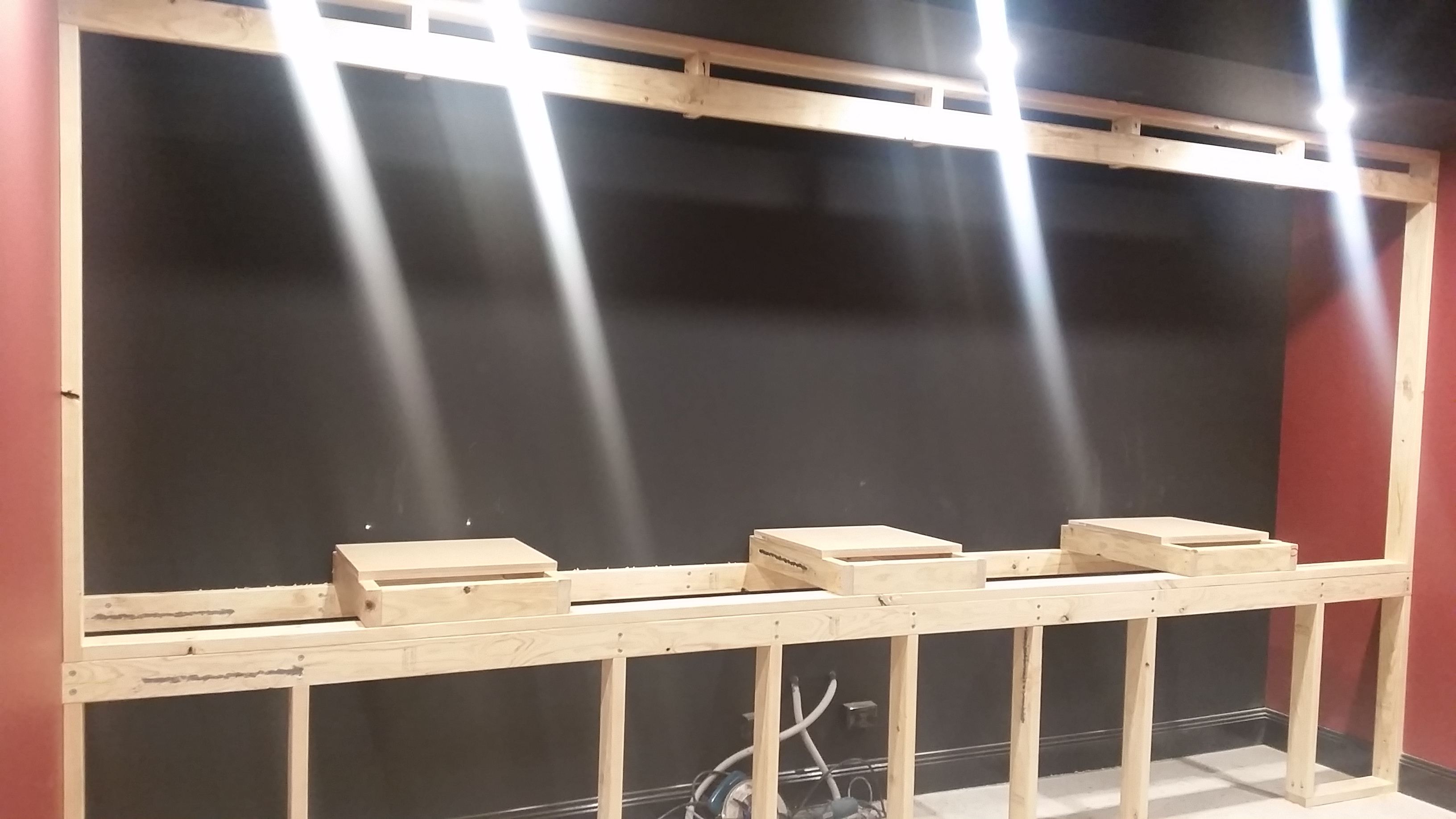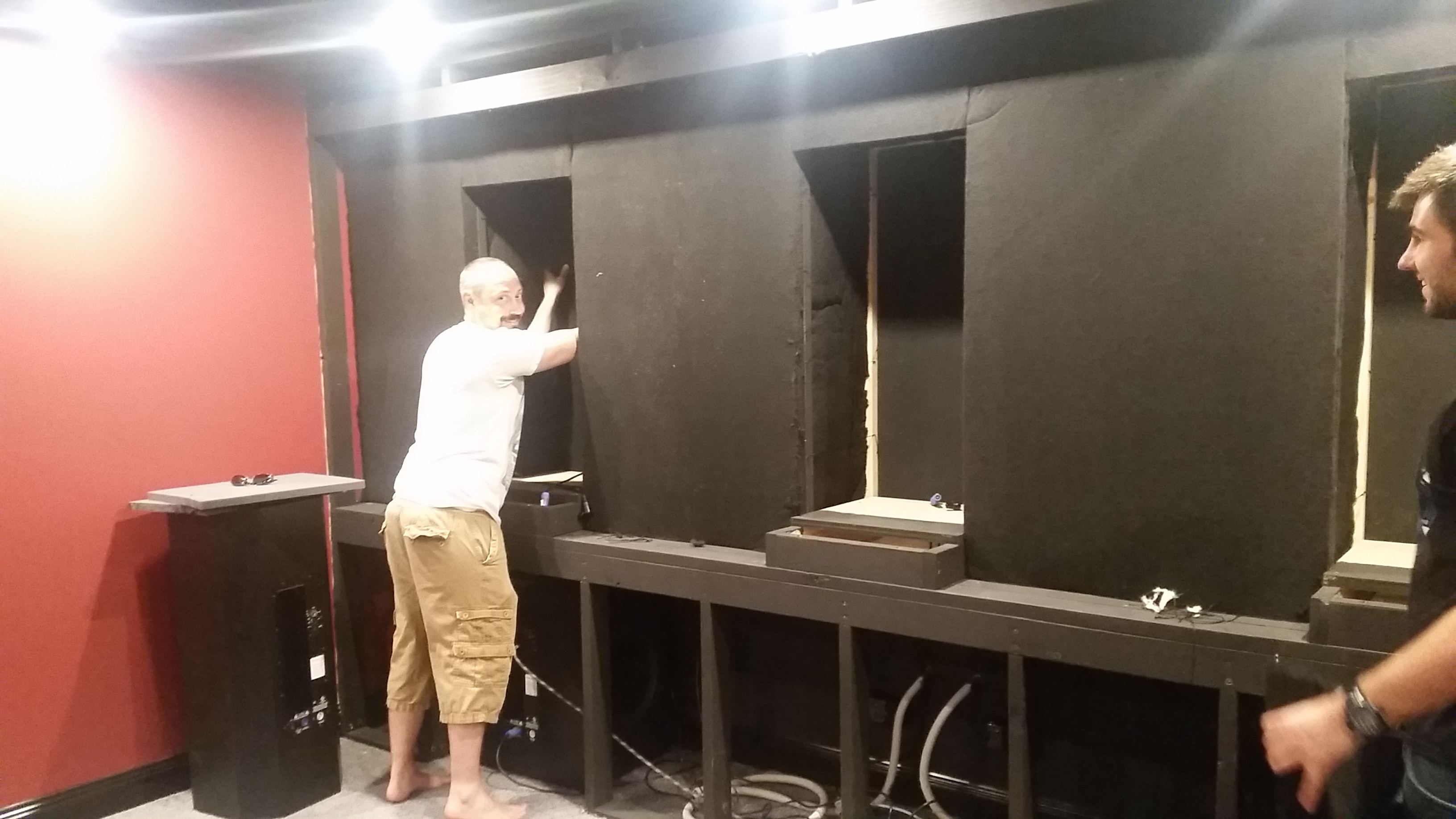 Baffle wall being built by our carpenter.