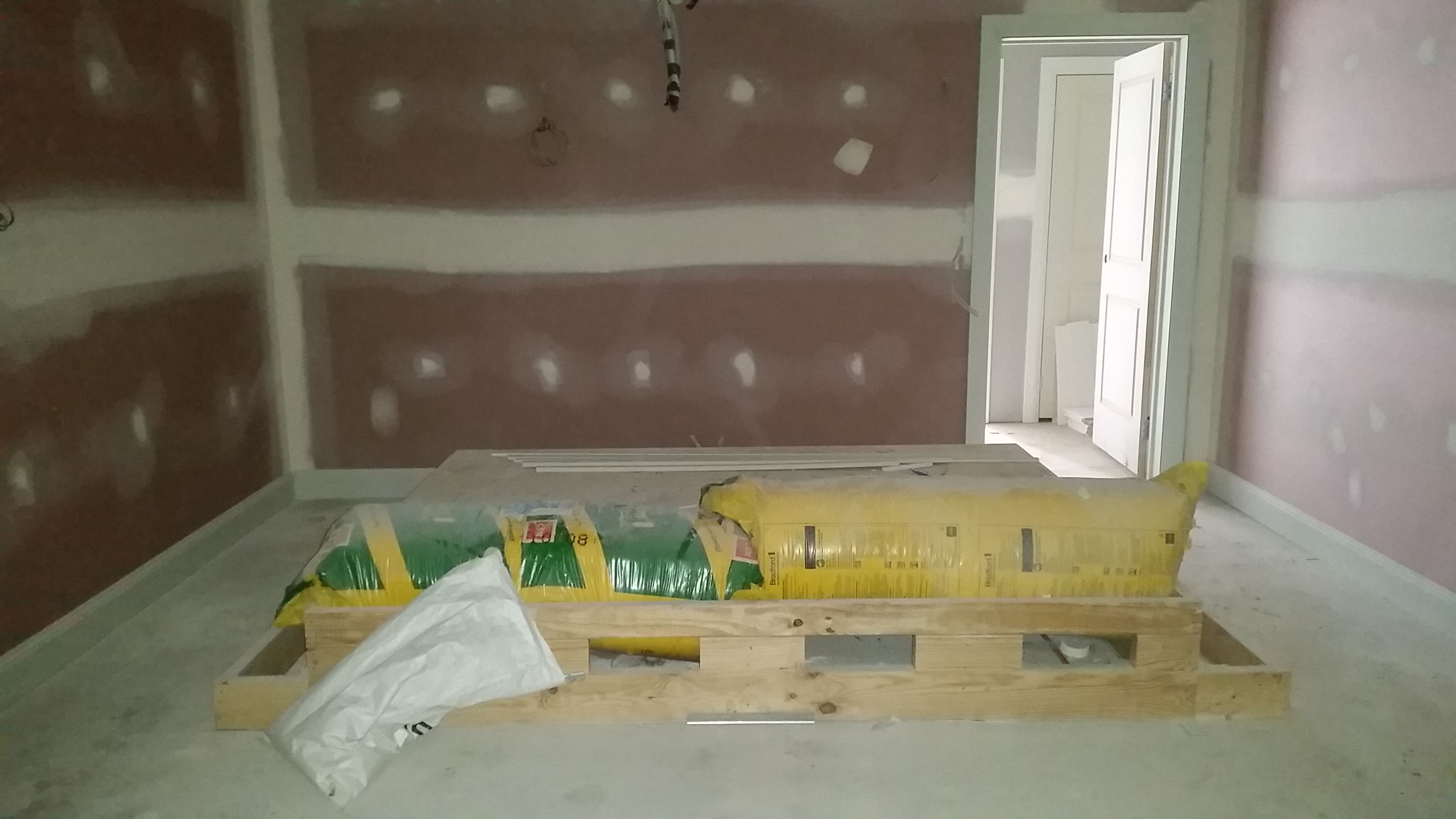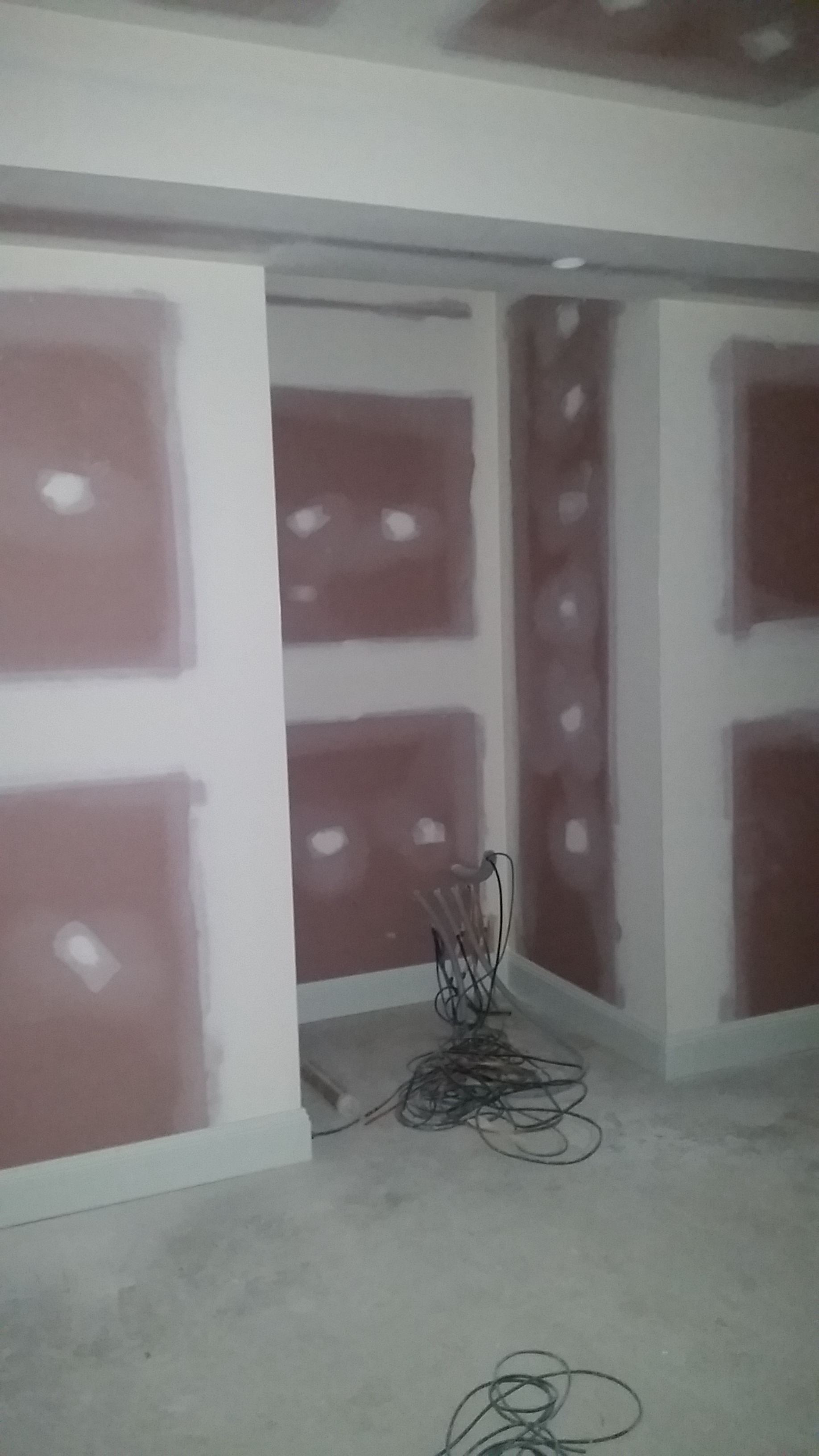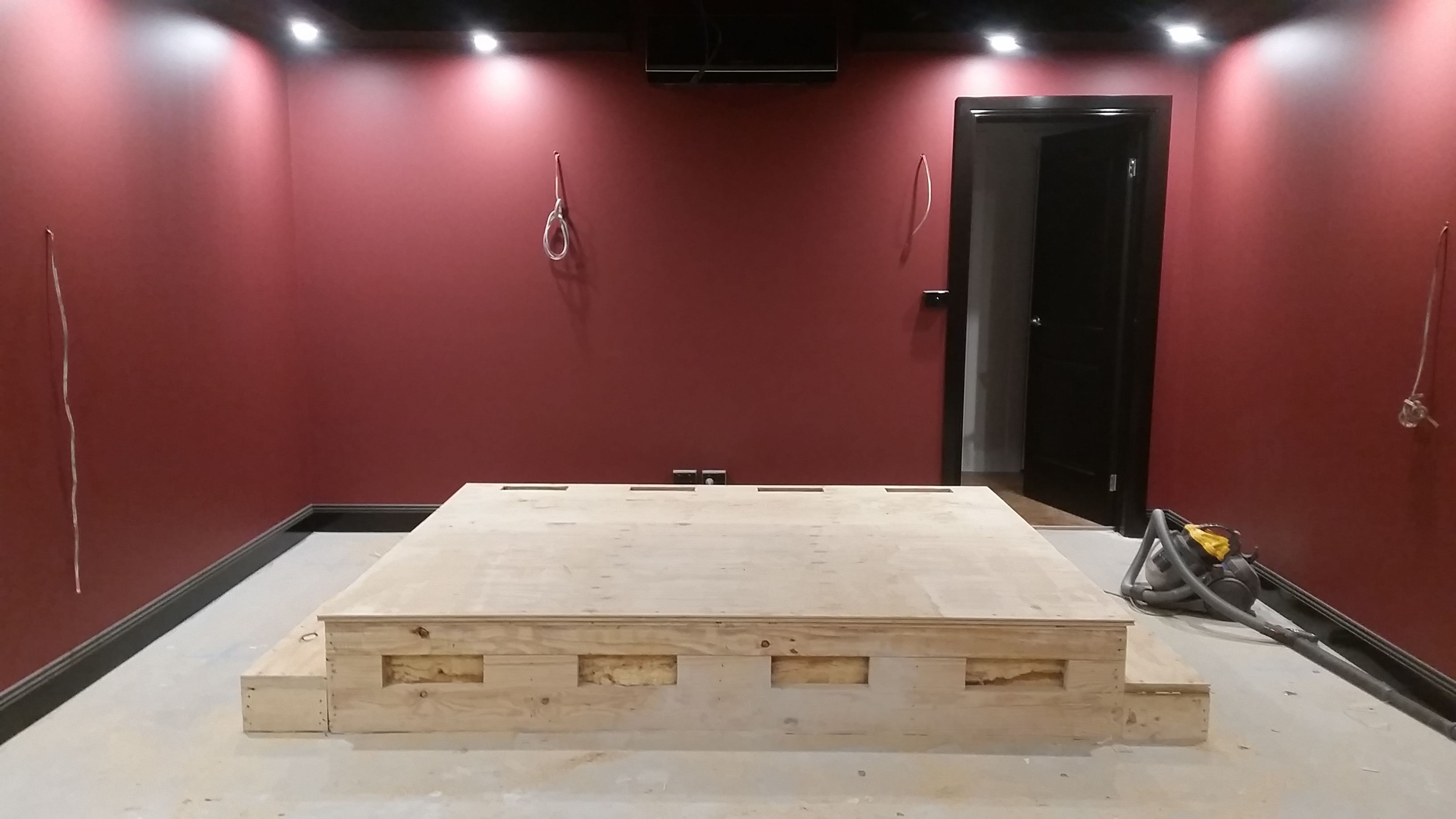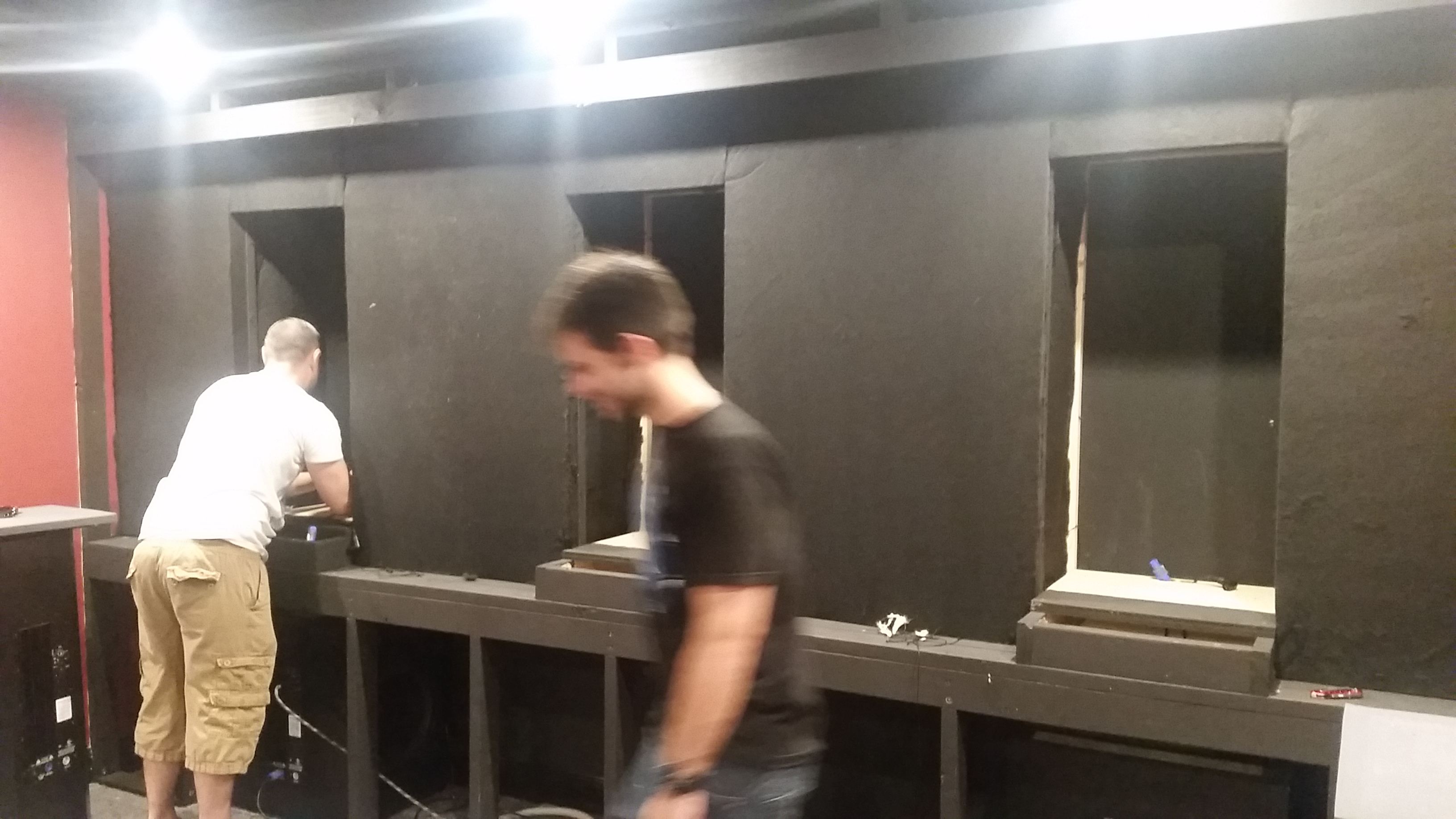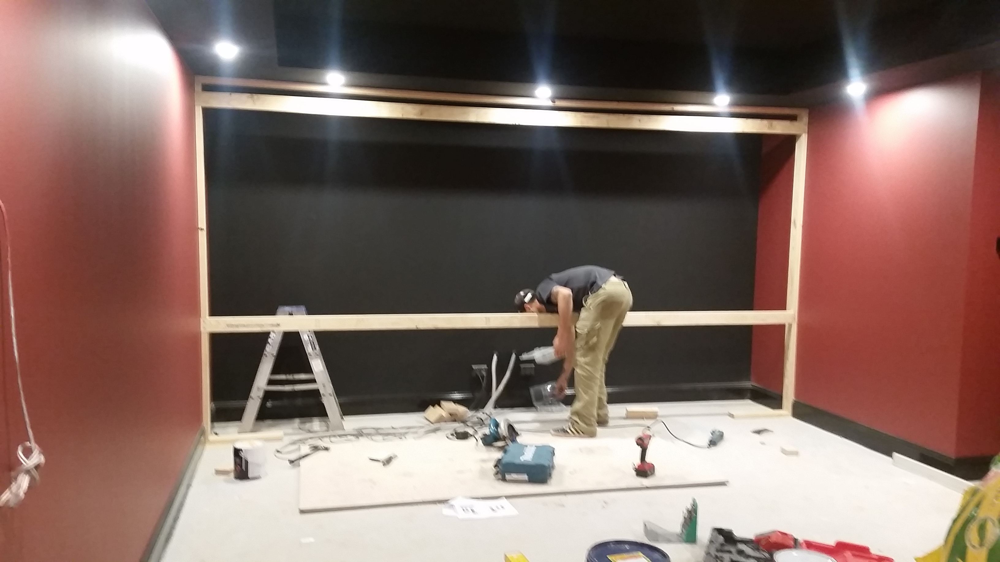 Baffle wall being built by our carpenter.