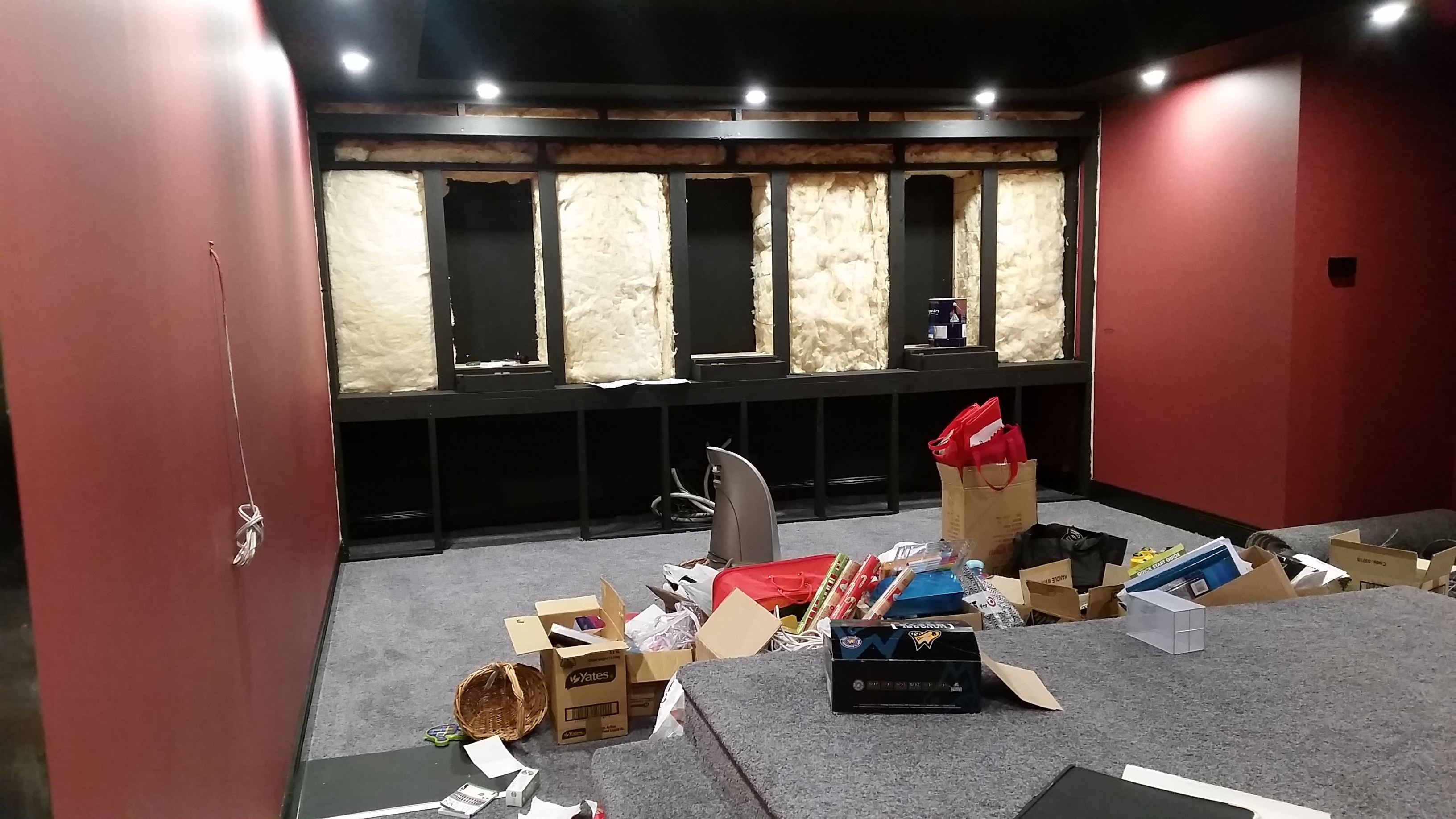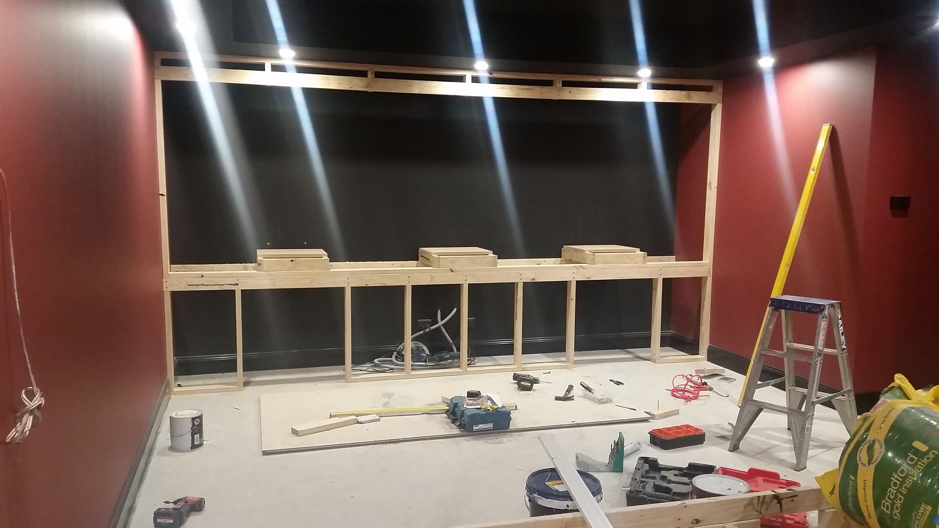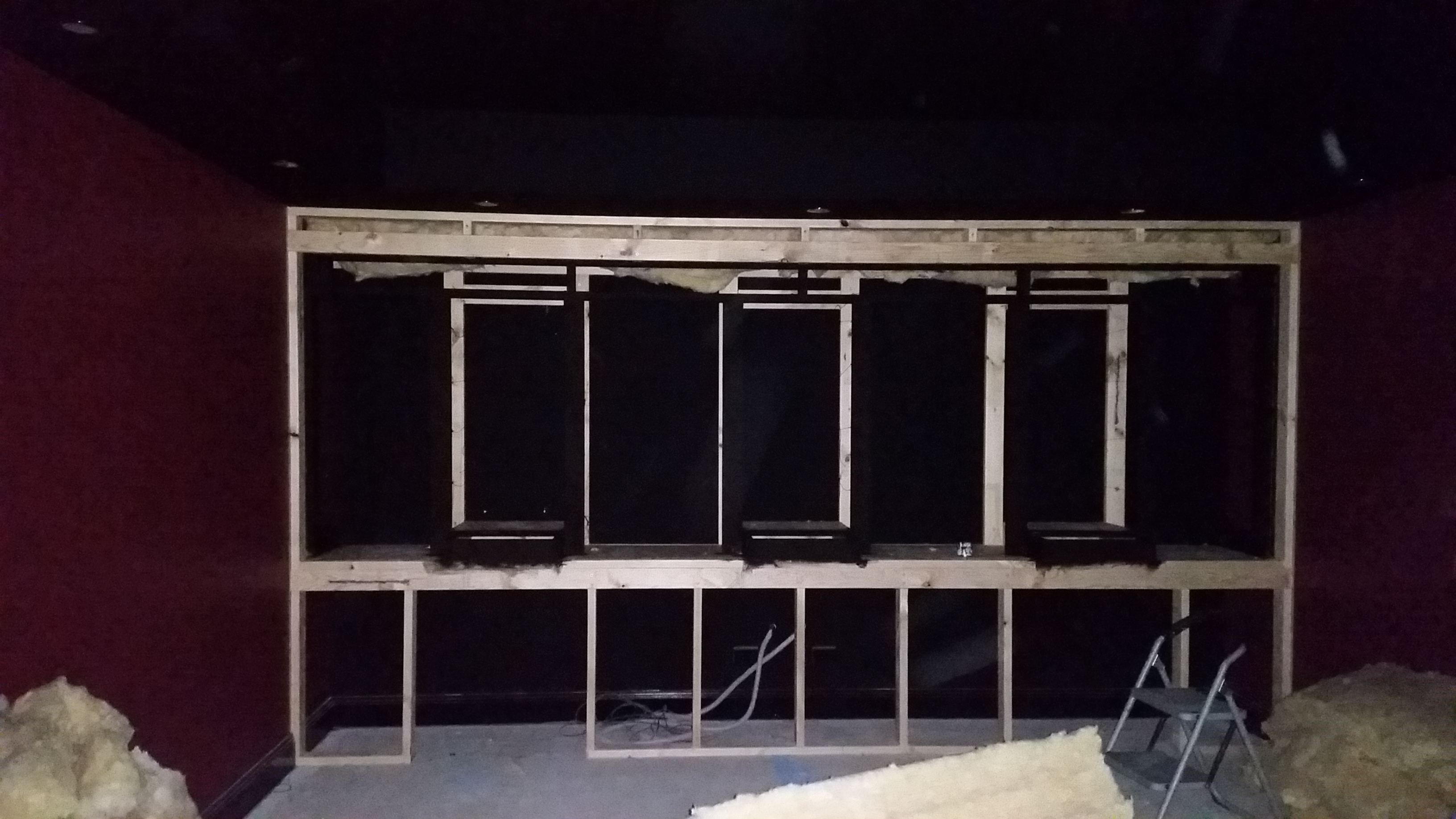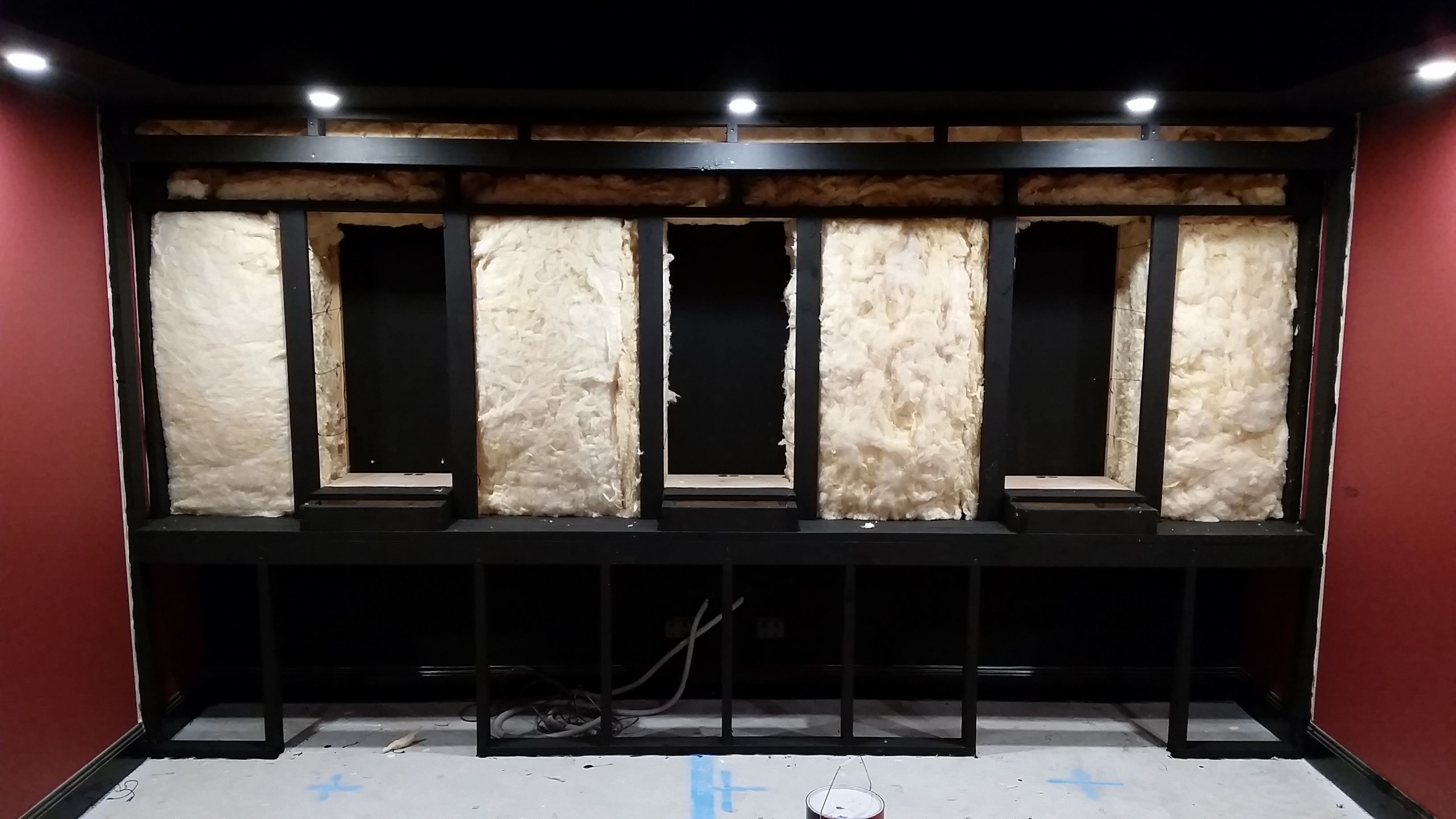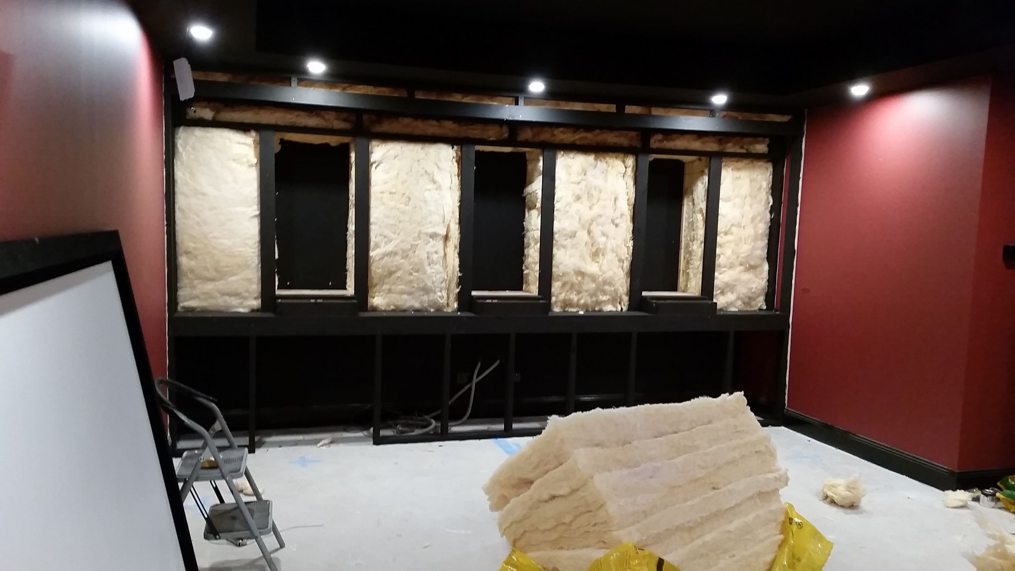 Baffle wall is being filled with Bradford insulation as well and then once all filled it will be all lined with 75mm CSR Martini panels to hide all the yellow insulation.