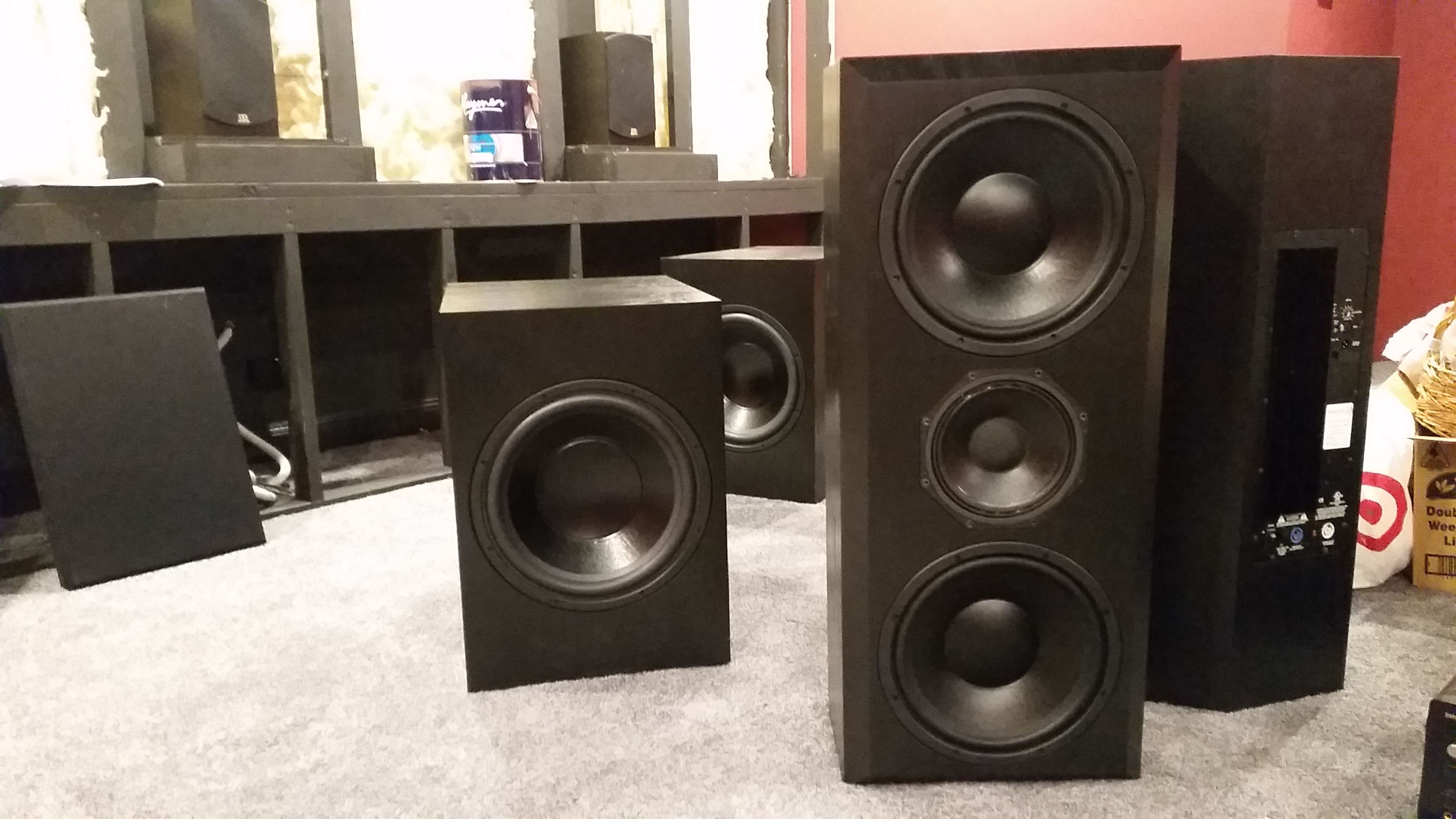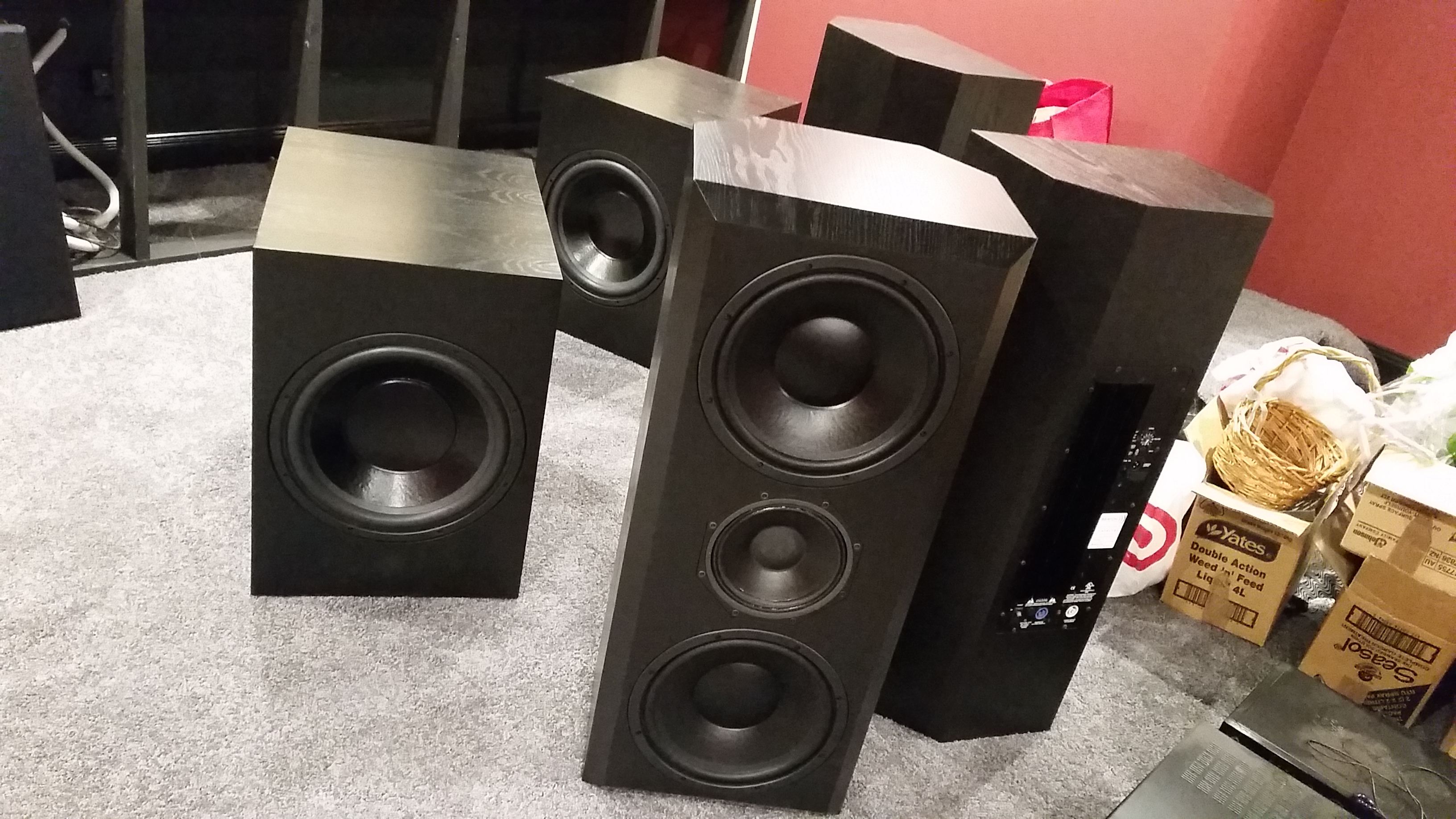 Rear surrounds are custom made by Paul Spencer from Red Spade audio who designed these speakers to specifically match and keep up with my 12C Catalyst speakers in the dynamics and still maintain clarity. They are simply brilliant speakers and he is such a knowledgable guy!.