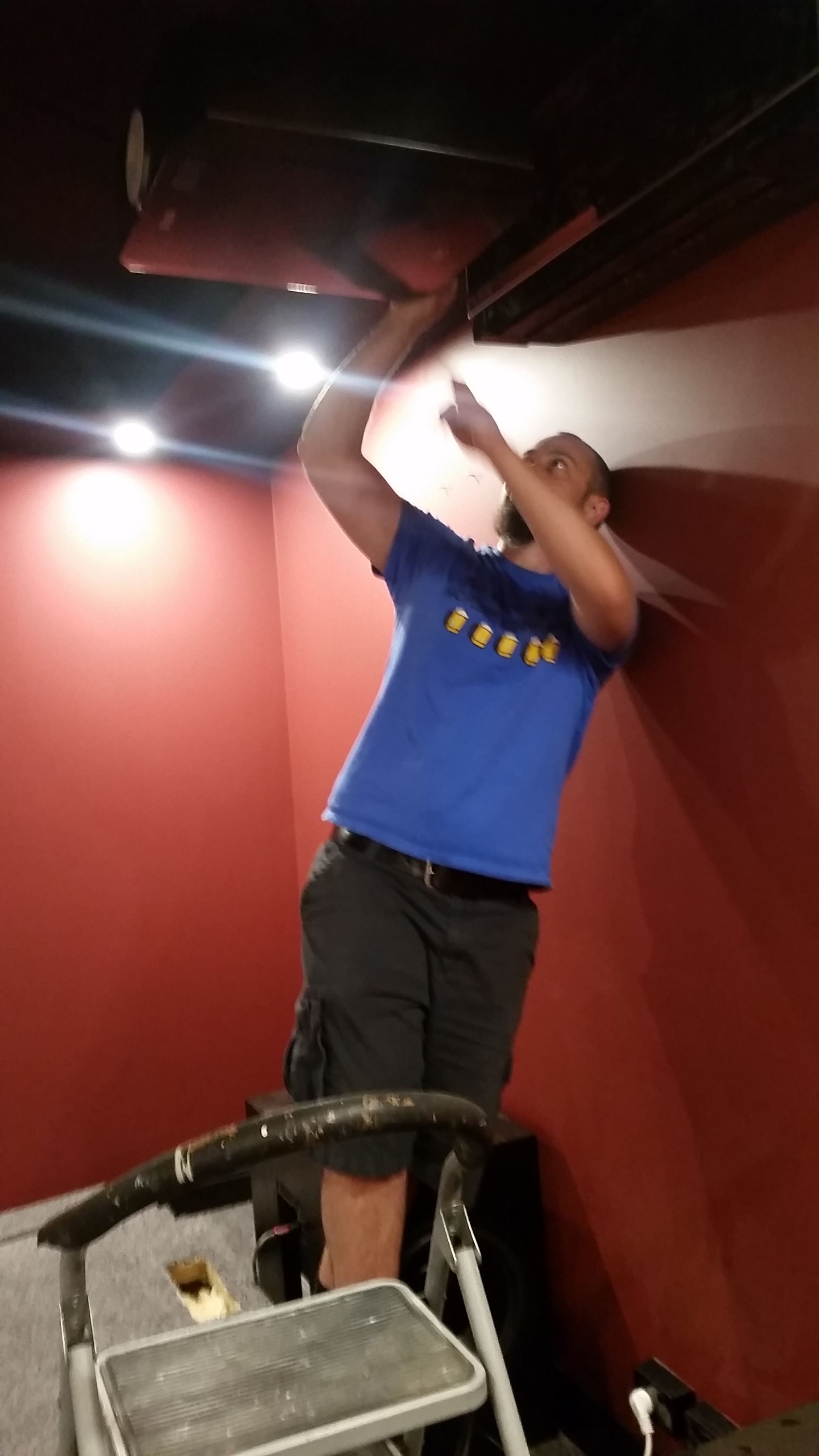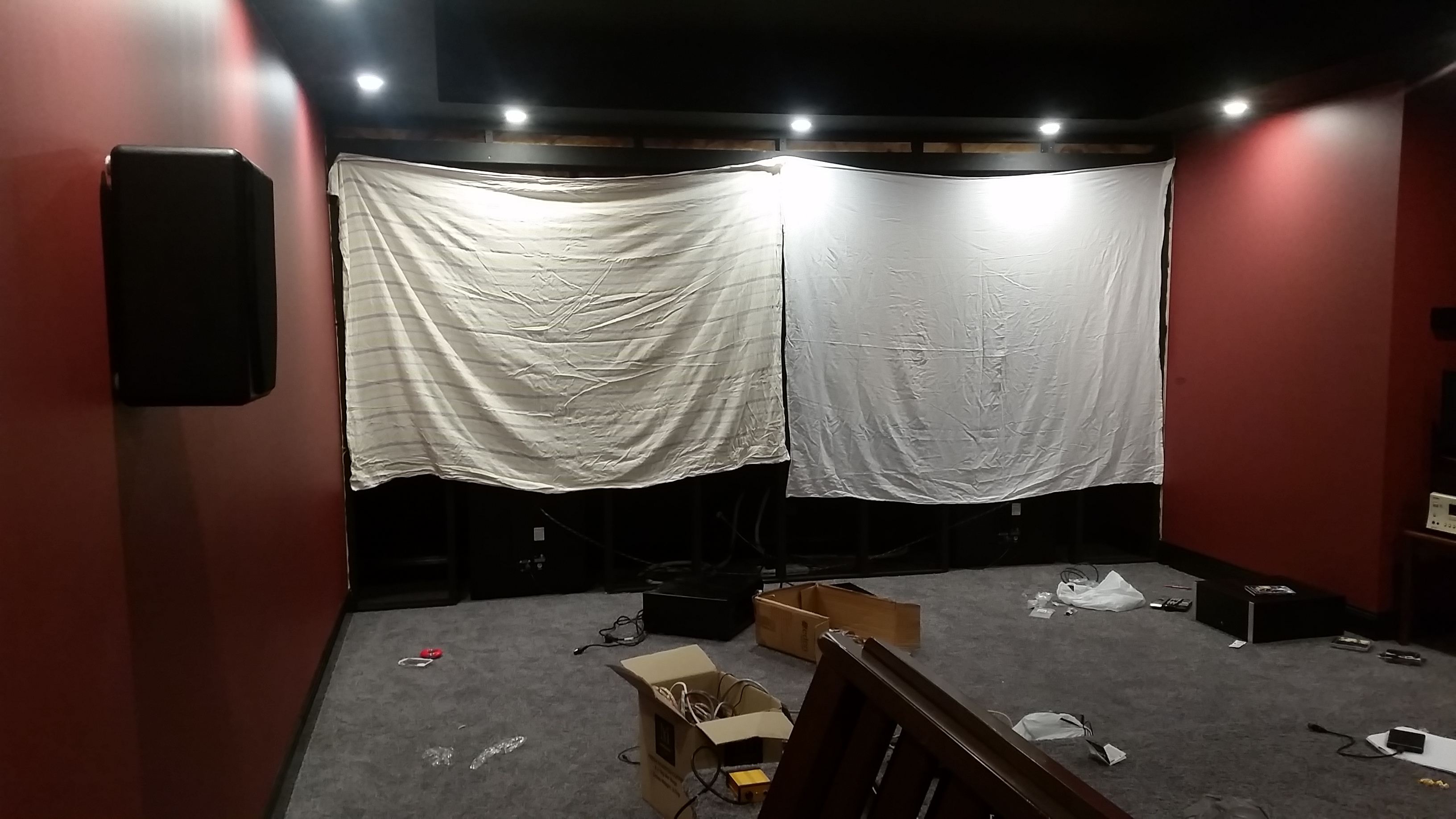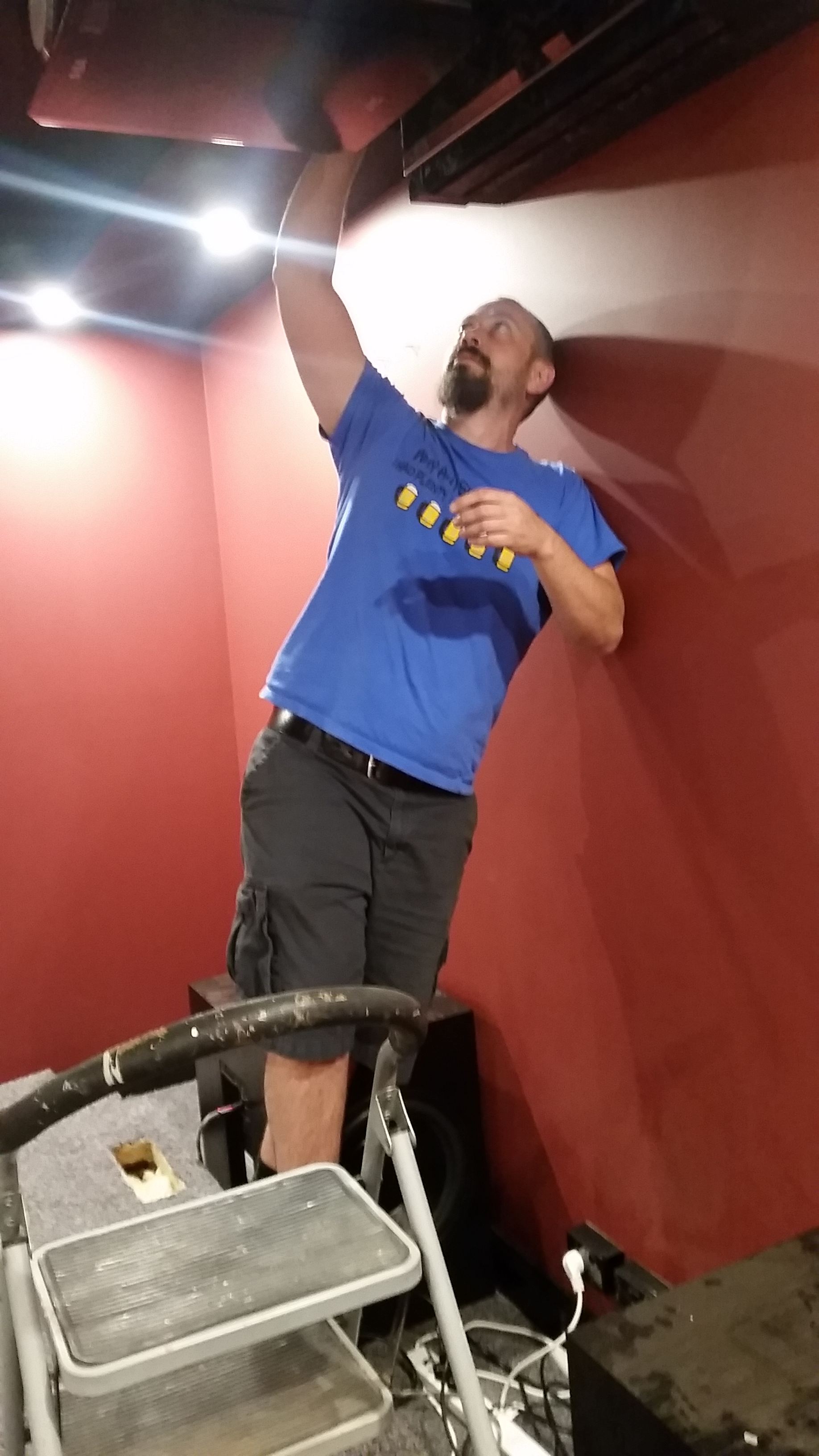 Projector also went up - JVC X55 with a temporary sheet screen setup  LOL!