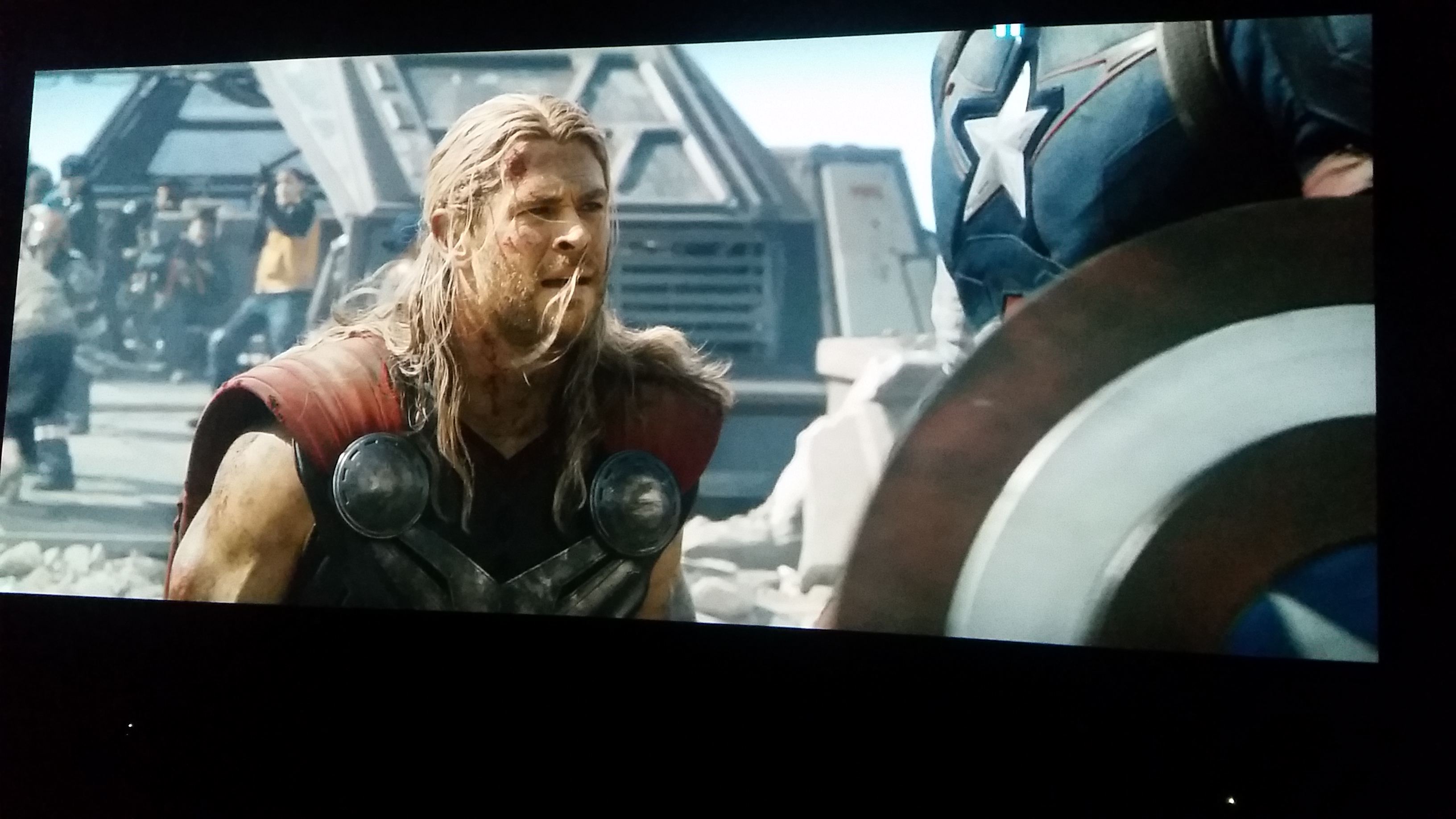 Here's some pics of the projector and 140" cinemascope screen in action!