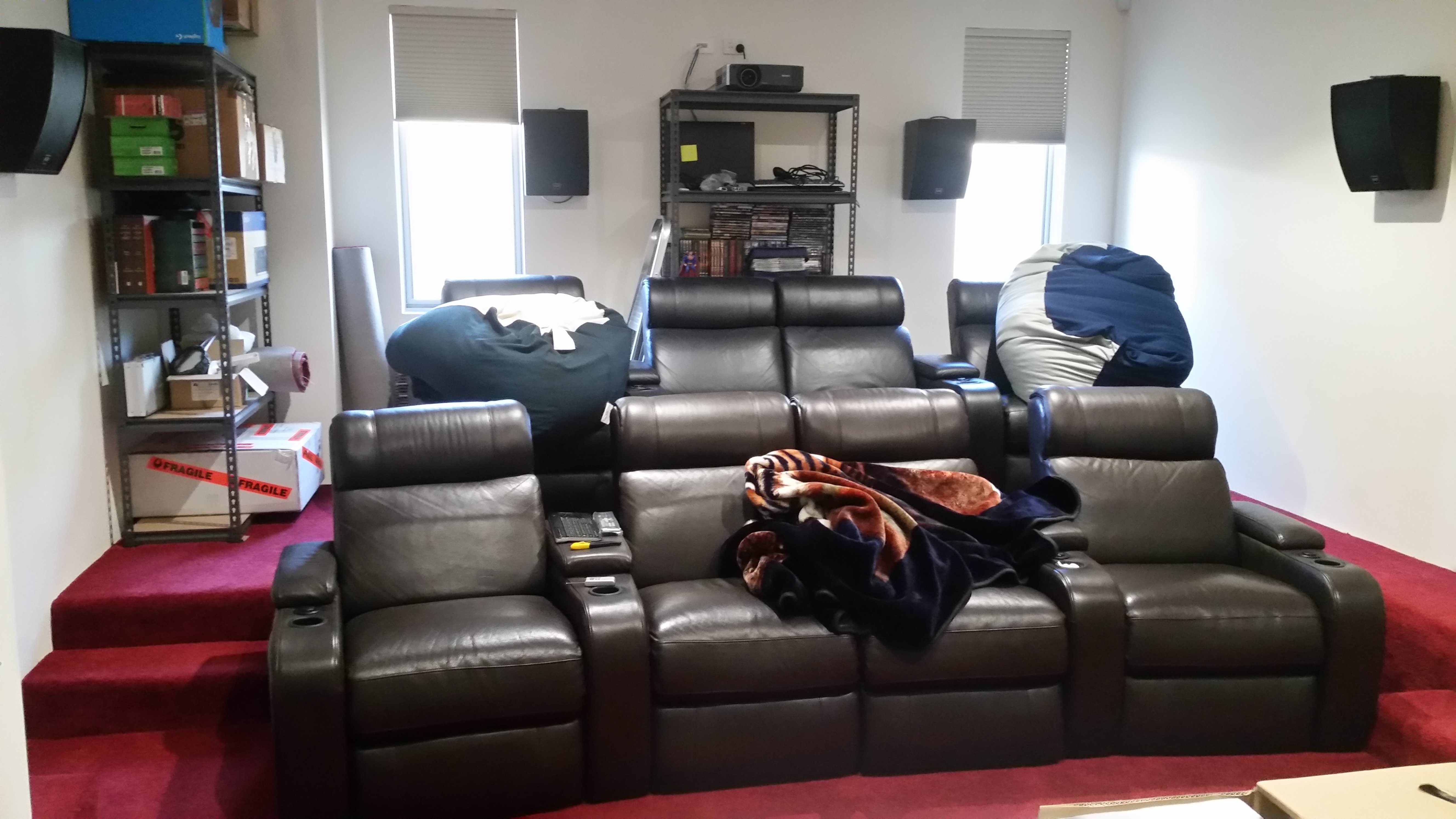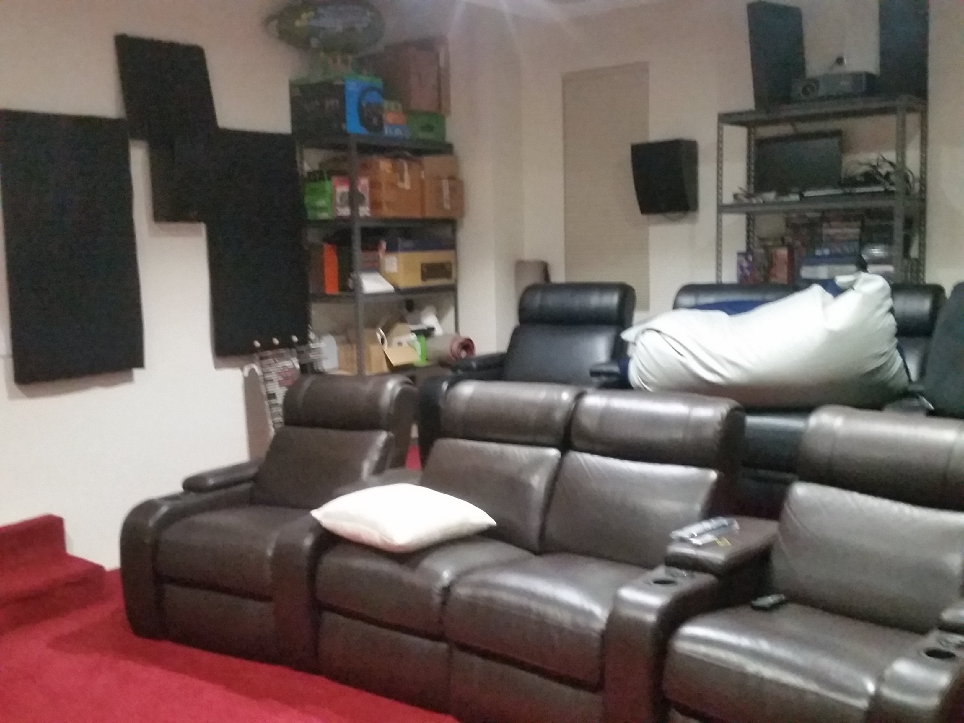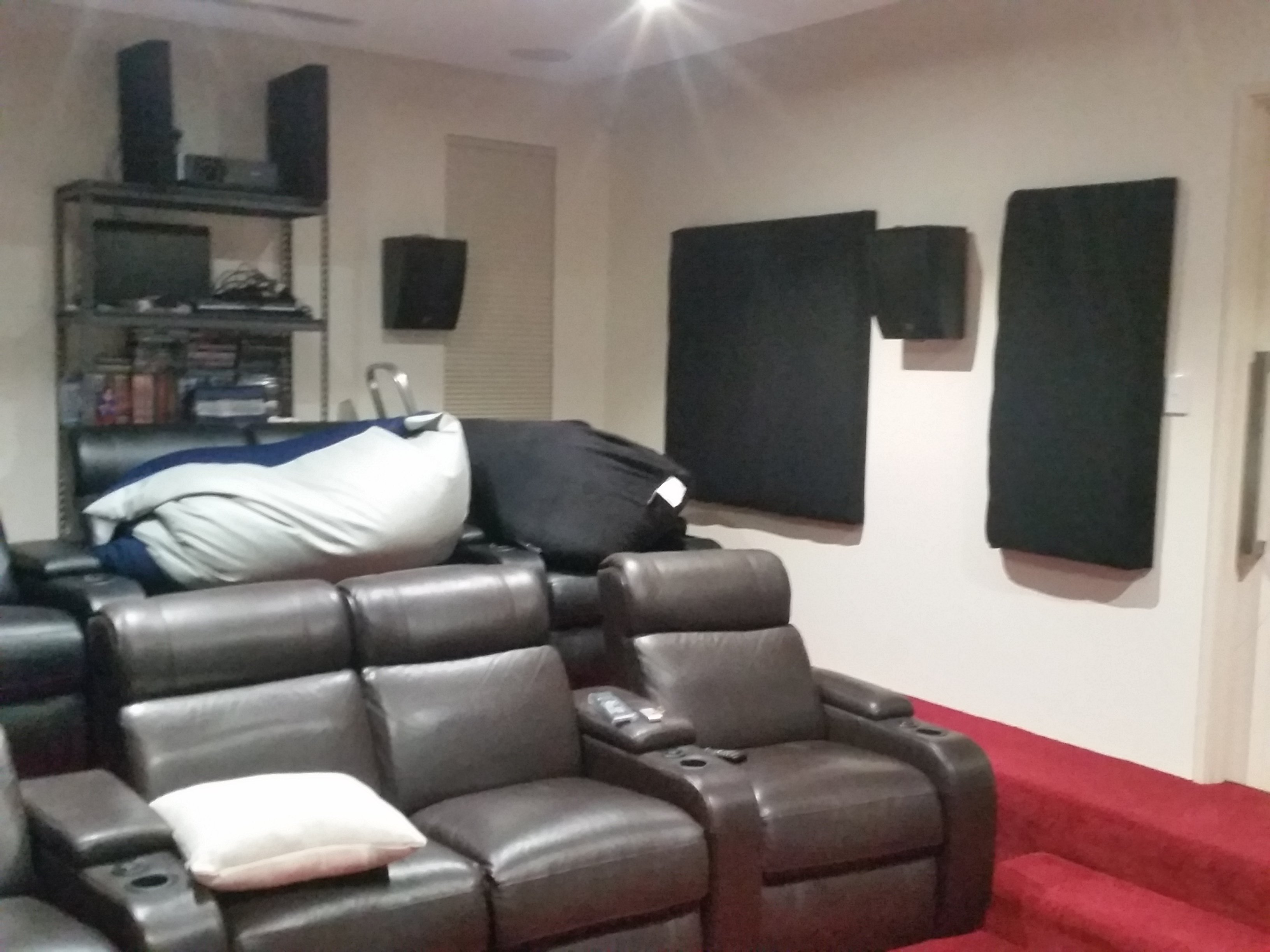 Subs tuned using U-mik and MSO software for even bass across 6 of the 8 seats. Money seat is the front row 2nd seat from the left (when looking at the screen).