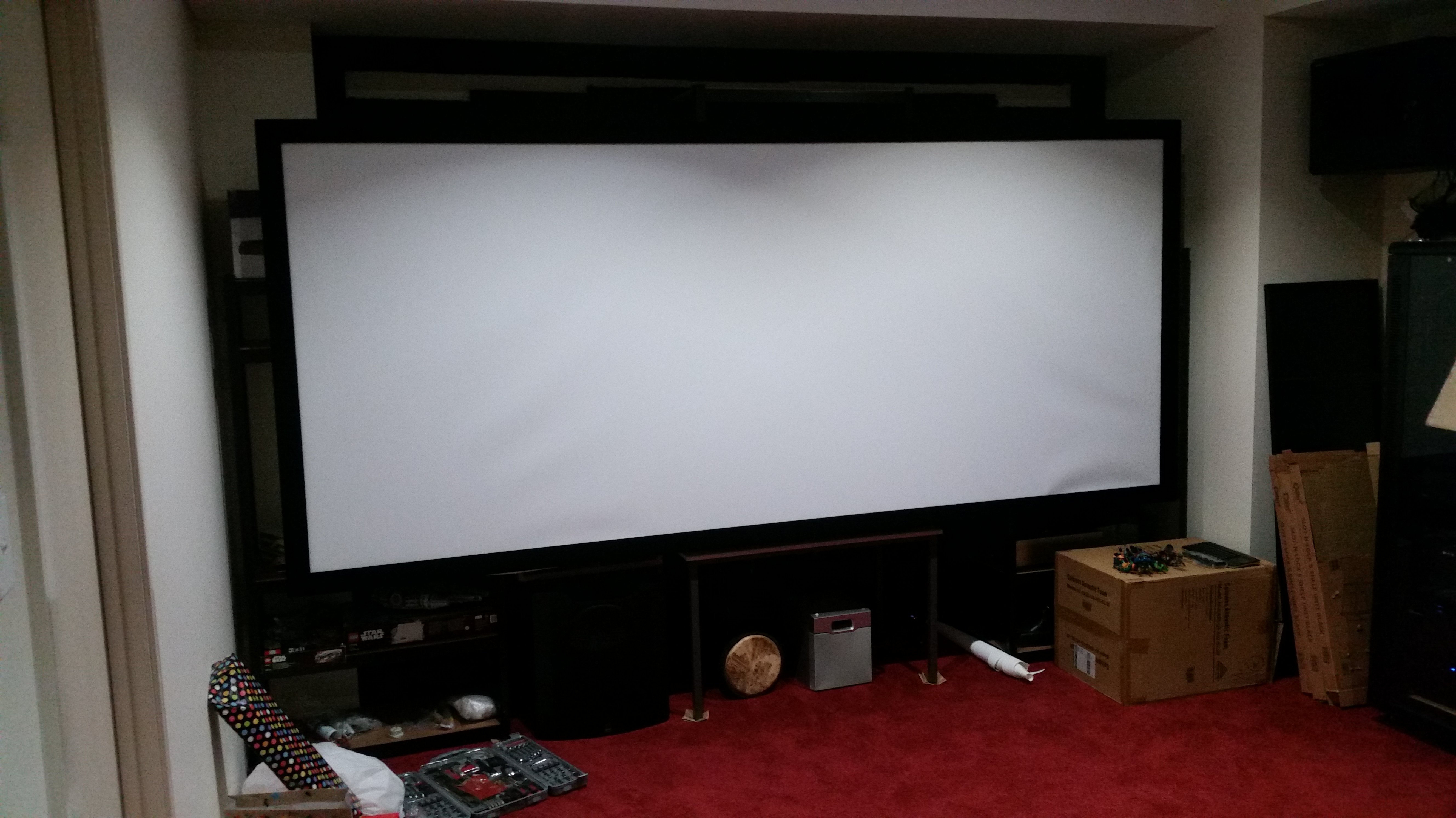 For those who are considering a dedicated room and are not sure about screen size (projector or TV) I have the following advice. Use some math and draw up the dimensions vs the seating position (plenty of well known and documented calculators out there). Then do a mock up of the screen using cardboard/cloth and other material. I was fortunate enough to have a projector and temporarily watched a few movies, of various ratios, projected onto the blank wall before I decided on a 2:40 screen and 150". I had originally opted for 130" but after a few weeks the size zoomed out to 150" was perfect.