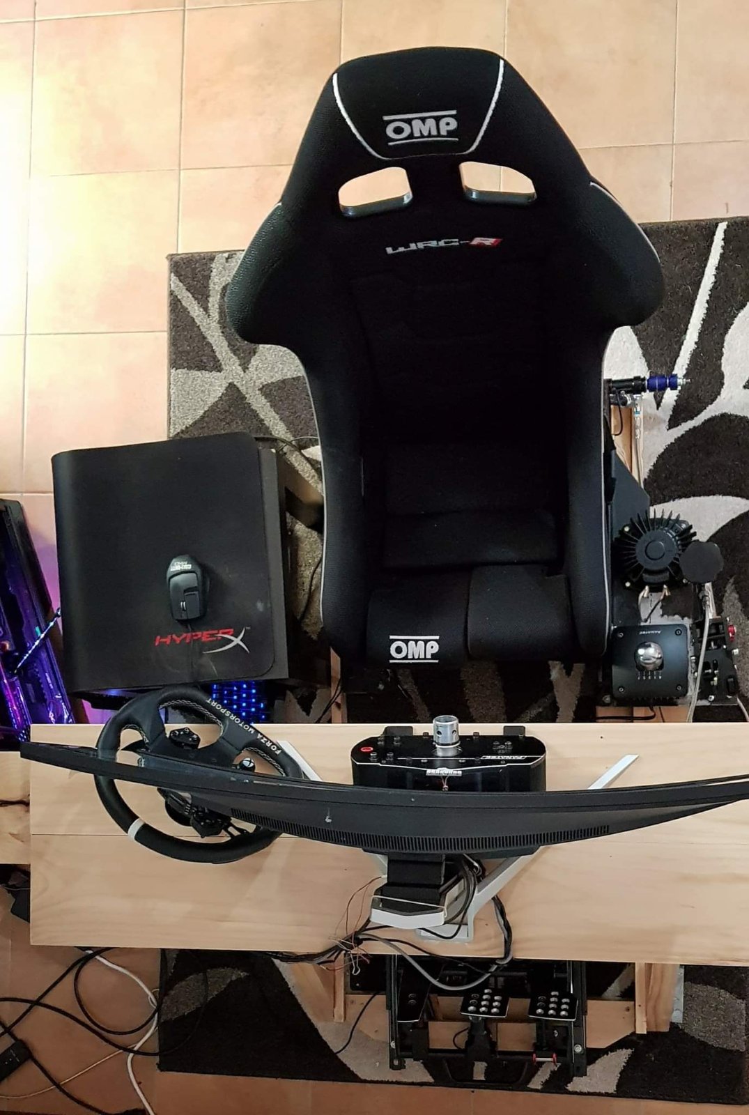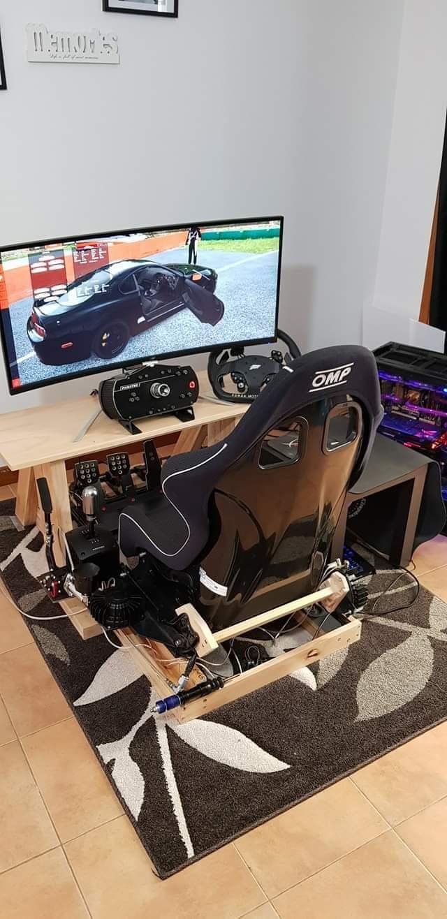 Here's few pics of my rig. I built this back in 2017.  Hydraulic handbrake was a challenge, that cost me around 600$ in parts and the only game it worked on was AC. Bucket seat came out of a 1100rwhp ford and the desk i made up myself as there was nothing on market that i could adjust the seat and pedals so that 4 year old could play.