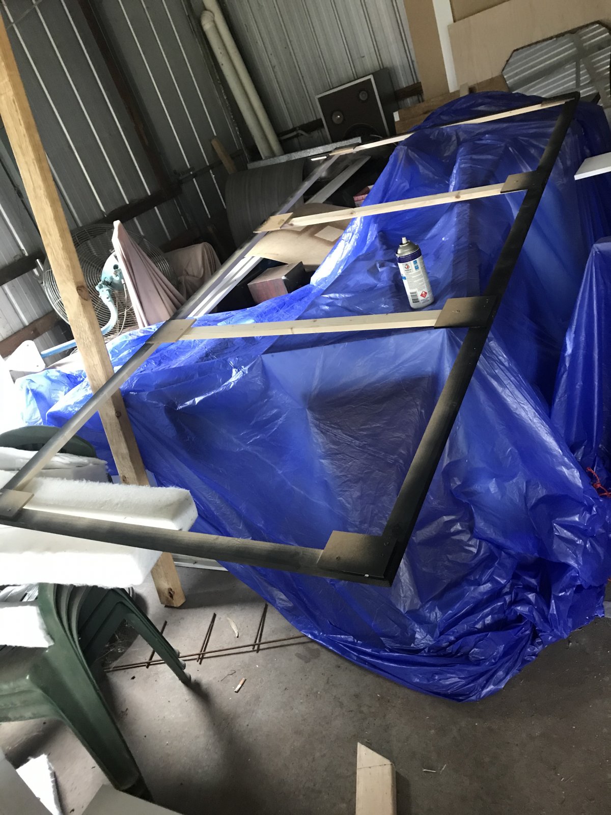 Progress is being made. Frames for the ceiling batts done, now just waiting to get the black batts to install. First concrete shelf poured and drying as we speak. Very nervous about that but with luck, it’ll turn out ok. Following a You Tube vid that seemed logical and reasonably simple.