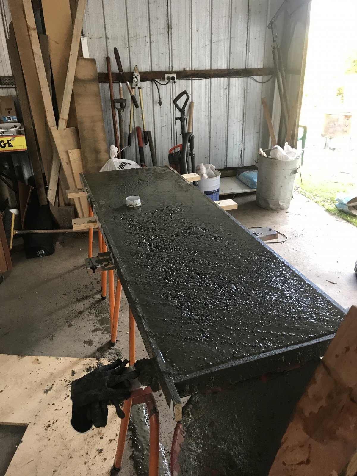 Concrete’s drying and playing with stain for the supports. Should be freeing the slab from the form tomorrow. Very nervous.