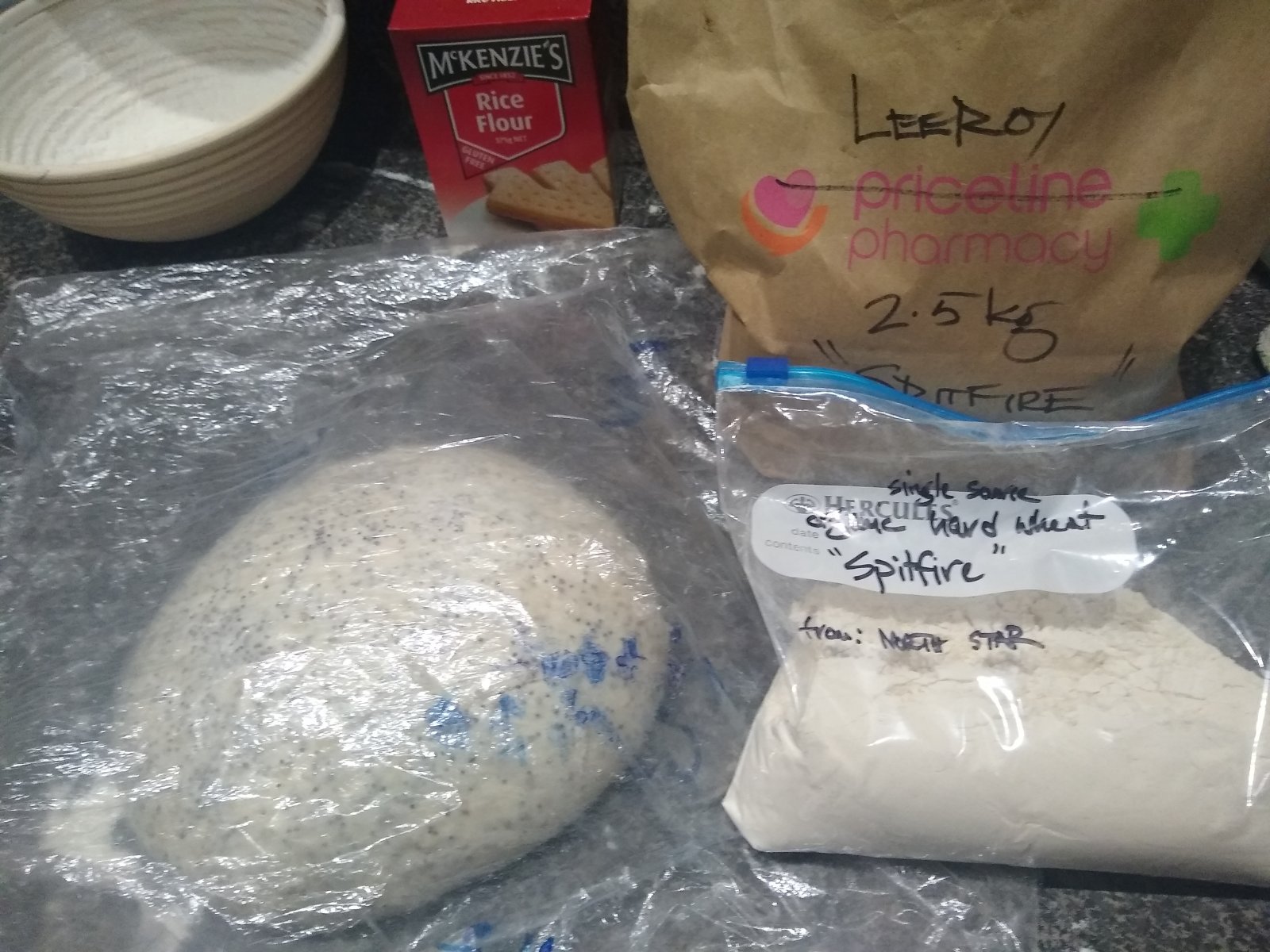 Wholegrain and unbleached organic Baker's flour starter.. Autolyse is a massive 48 hours in fridge!