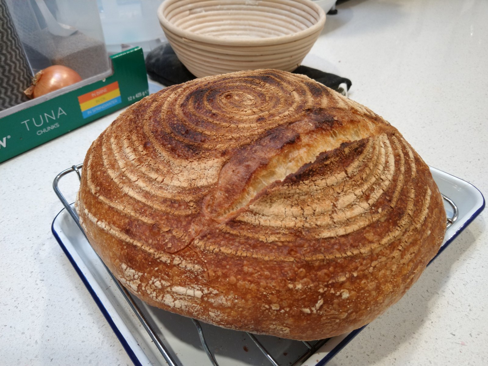 A quick search for sourdough yields @Luc. Naturally! I've been inspired lately on the same journey, more based on the whole overly processed nature of even basic foods these days. I'm only a few weeks in but aiming at less photo shoot aesthetics and more family friendly end results. Little grizz absolutely loves the bog standard white loaf I do in the loaf tin which works well for school sandwiches and the like. I'm yet to have a crack at a cob loaf type arrangement but will be tempted heading into the cooler months. She's less keen on the 30% rye, which seems to be a struggle to get a good rise on, at least thus far. I'll persevere nonetheless