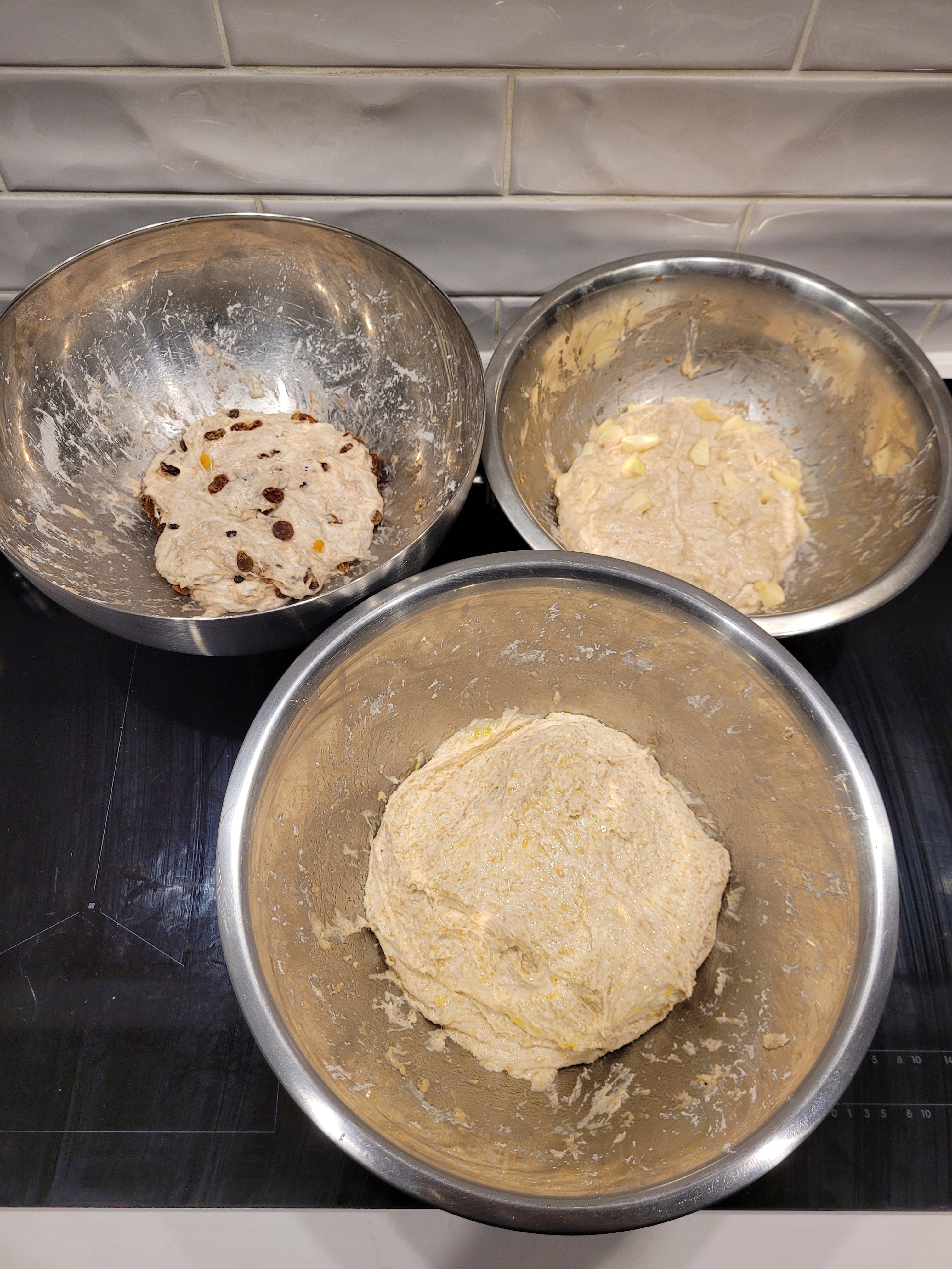 *4 stretch and folds at the beginning or 6 if you have the patience and time as the amount of extras in this dough means they want to fall off the dough as you stretch.