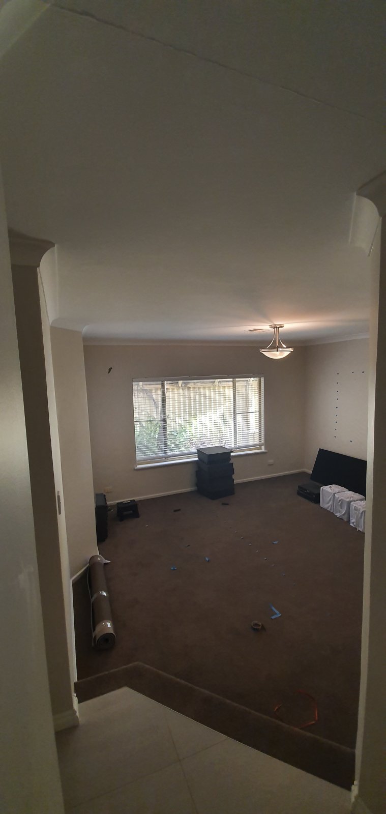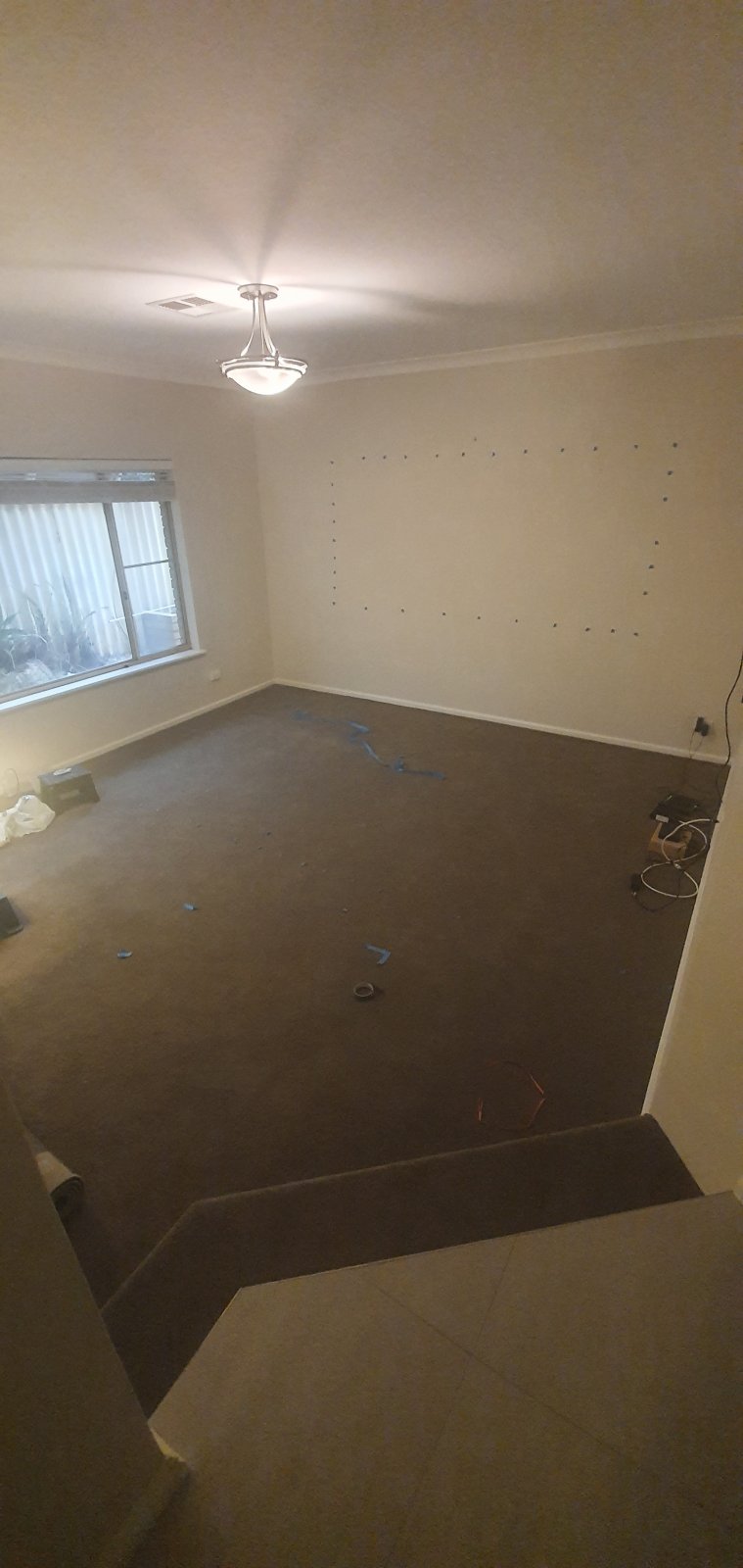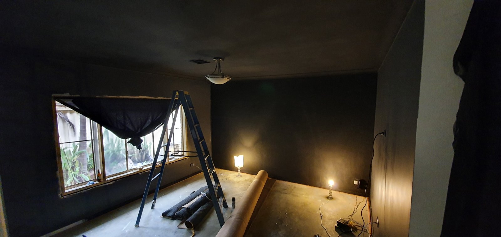 • Painting has started. We went with the dulux home theatre black for the front wall and ceiling. It looks really good, but I've heard its a nightmare to keep cleans. So I didn't want any of the walls t