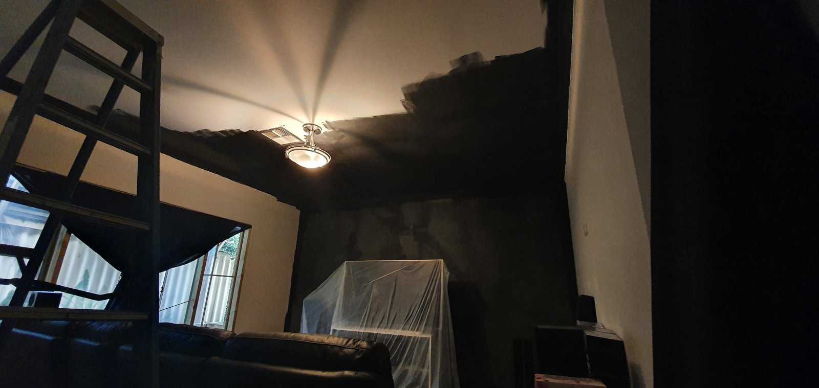 Painting has started. We went with the dulux home theatre black for the front wall and ceiling. It looks really good, but I've heard its a nightmare to keep cleans. So I didn't want any of the walls that people might touch to be that colour. So we weren't without of the darkest charcoul colours that dulux offers. The black was also really hard to get a nice finish, you definitely need to buy good quality rollers to get any kind of decent finish, just FYI