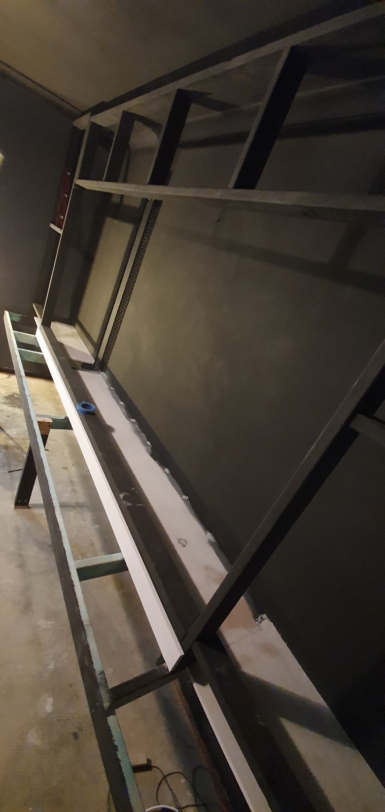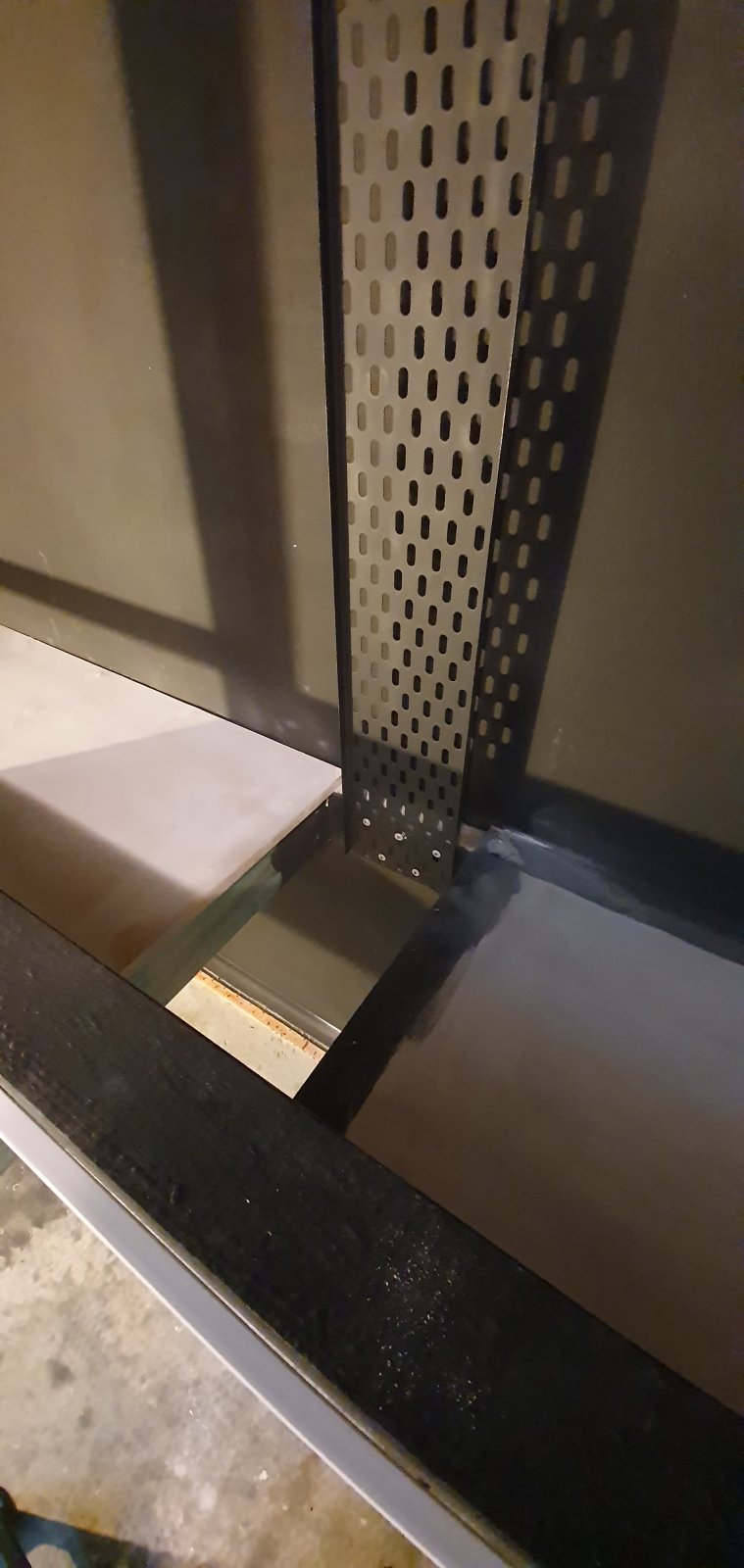 Vertical cable tray painted and installed ready for cables.