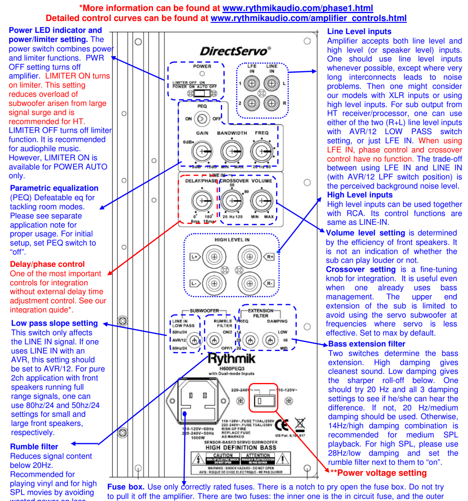 I too have set my Rythmik plate amp controls to: