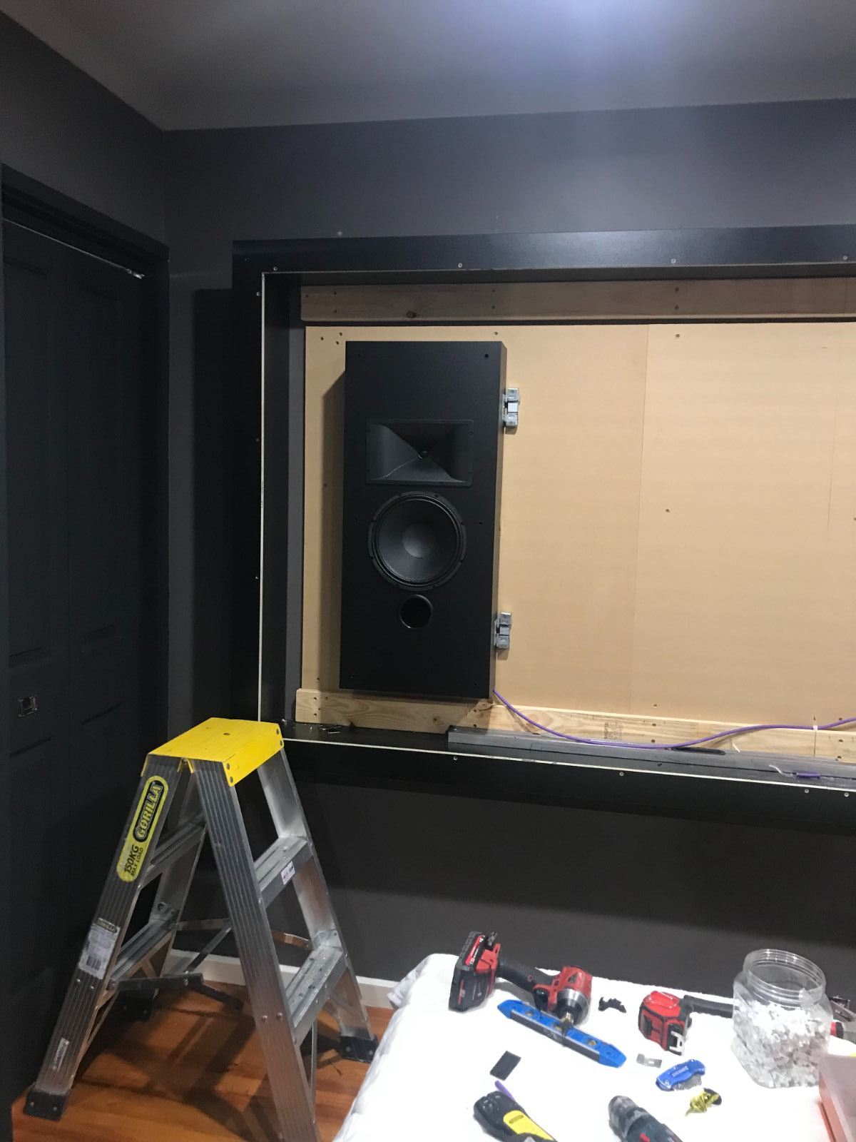 It's completed so now all is left is to calibrate. We did end up rotating the speakers upside down so the tweeter was more at ear lvel so thank you Audiogeek for that suggestion. I will post pics after calibrating tonight.