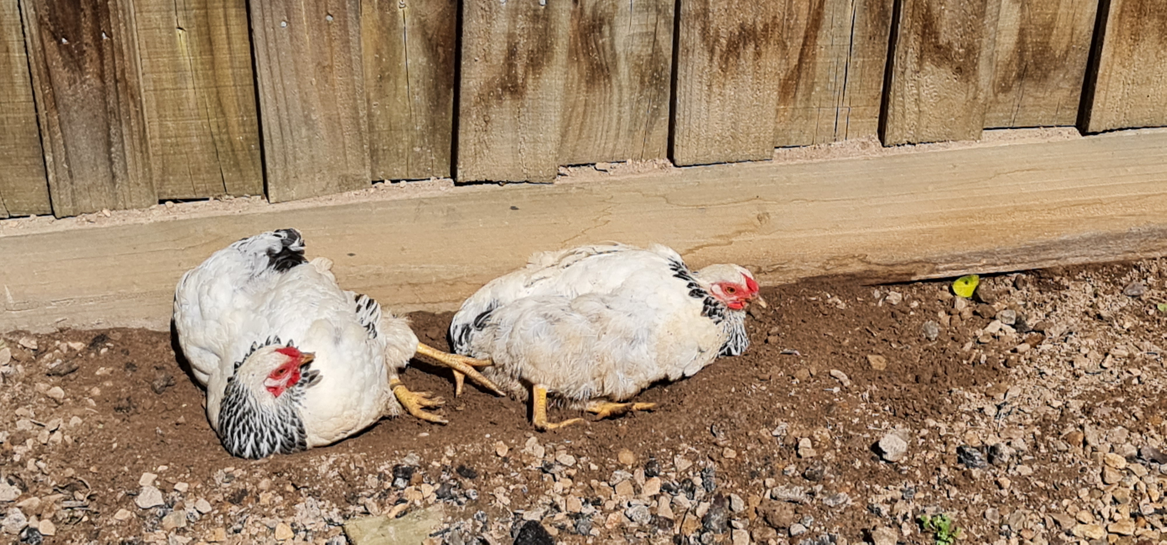 We have 4 lovely ladies in the garden that provide them for us. One Sussex Bantam (called ED-209) and three Colombian Wyandottes (called Griselda, Cassie and Clegane - collectively referred to as the "Drug Lords"). Here are a couple of them dust bathing: