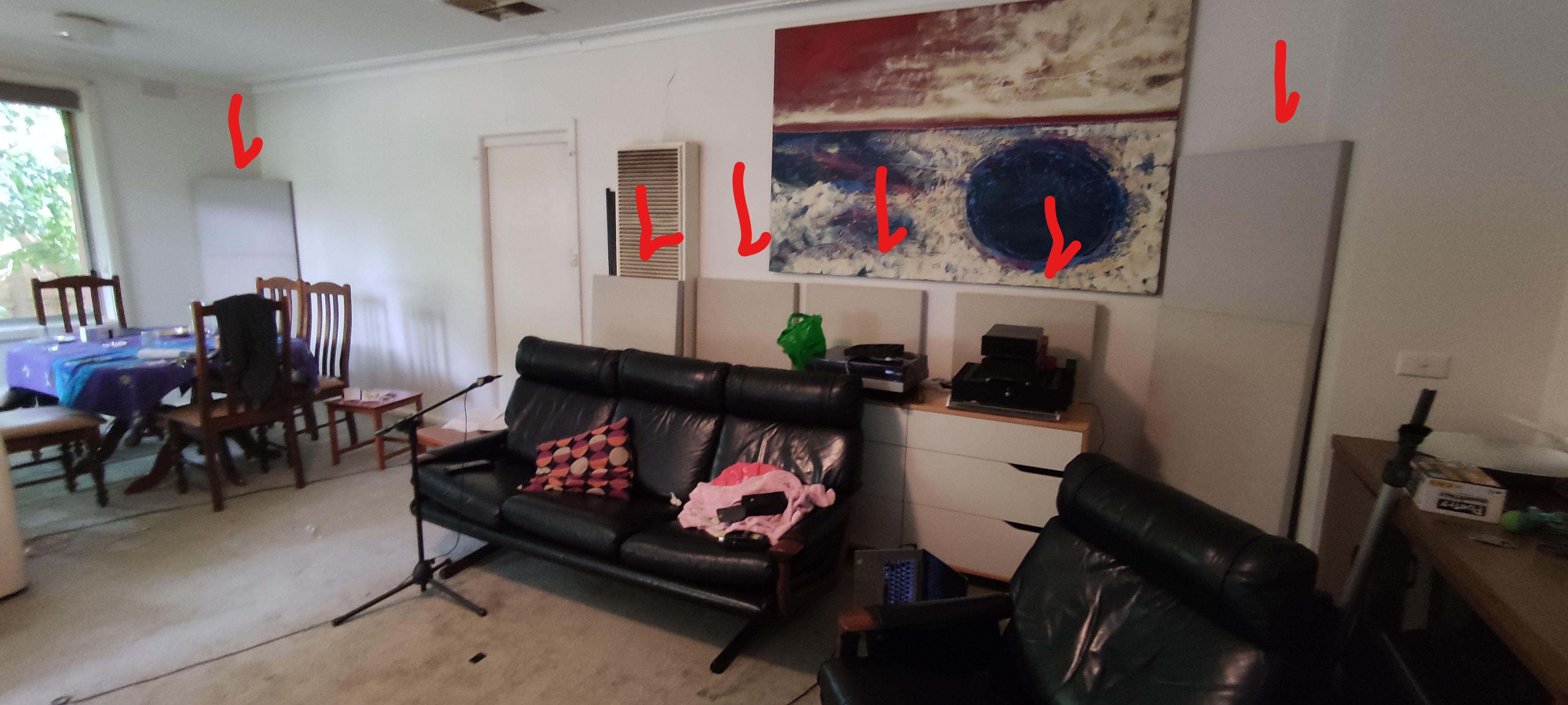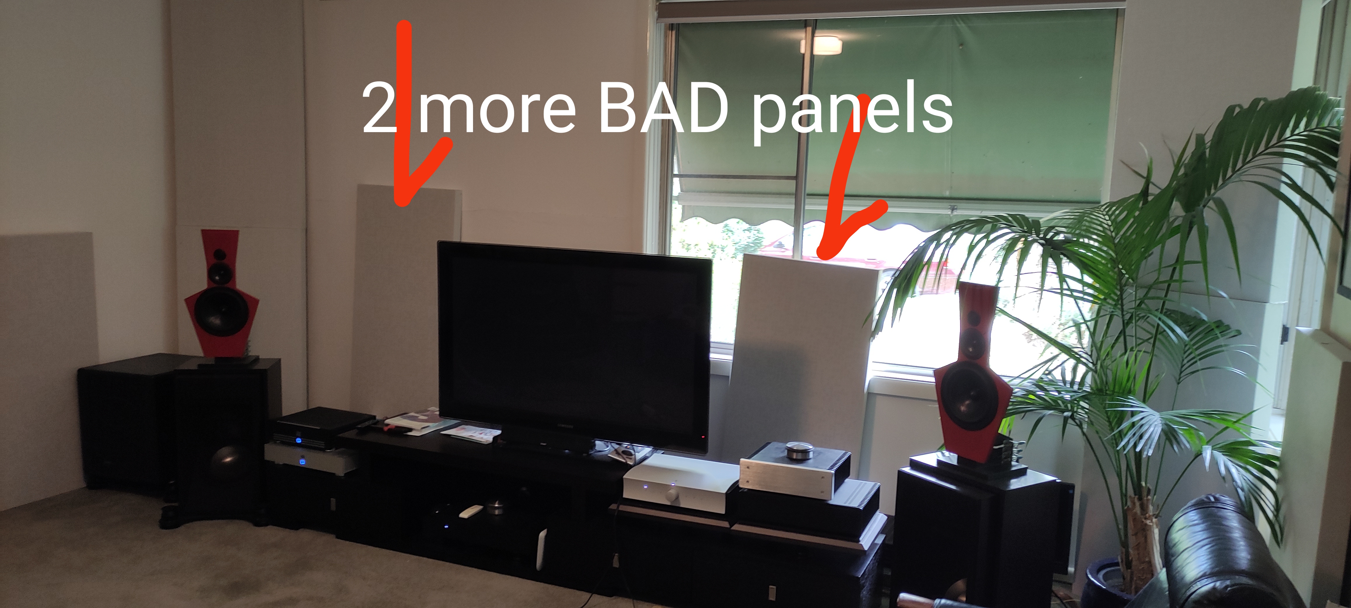 This is the pain of my inflexible listening room. I have glass windows down one side, an alcove that opens to a bathroom and a laundry on the other and a hallway that starts at the top of the room and