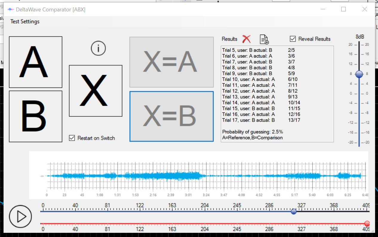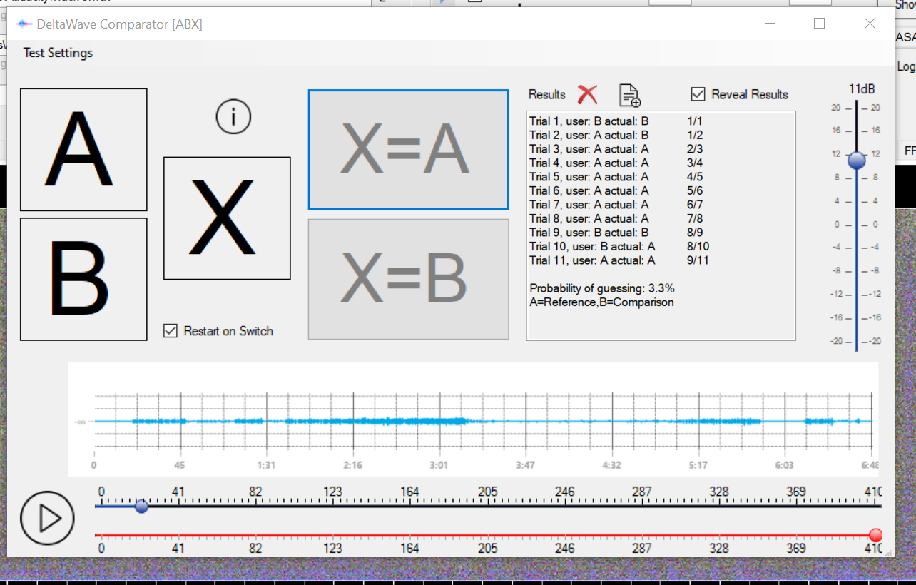 One cool thing I found in it is this thing called a comparator. So if you are wondering, can I really hear the difference between these 2 treatments it will set up an abx blinded for you. I struggled a little whilst I got used to it and till I found a good telling bit but 98% confident is good enough for me. FYInterest the bit I focussed on to hear the difference was the high hat. Its more slurred in the L2 version