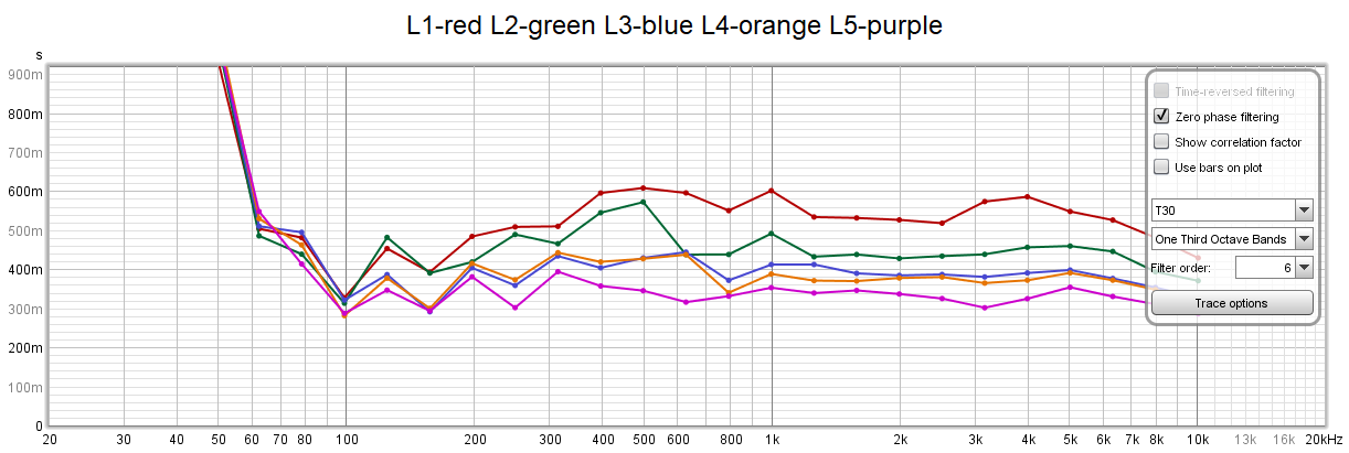 Ok, another thing I was going to mention is what is a good RT60 target? Well if you read things like this forum and others you might say anything from 200ms to 600ms.  Reason is that room size and reflectivity vary and so "optimal" RT60's do vary also and just to add a final gazumper to it all, It also depends on your taste. Ok, so anything goes clearly.