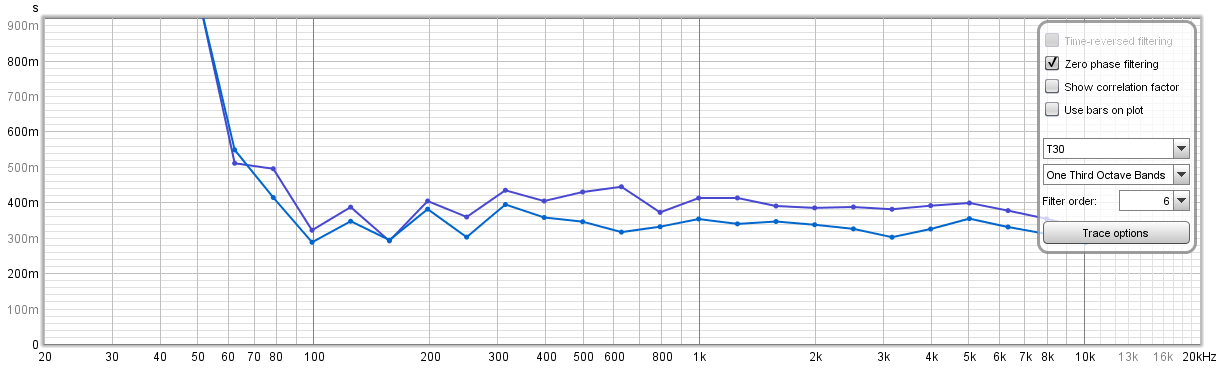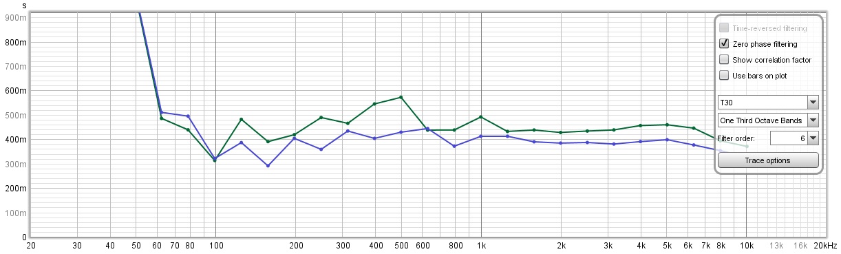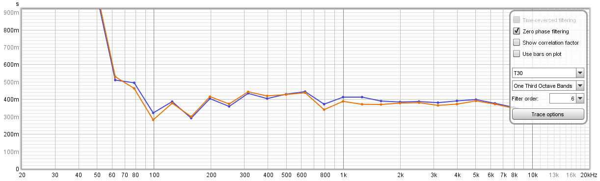So a nice reduction in RT60 and spectrally an evenish reduction across the board above 100Hz