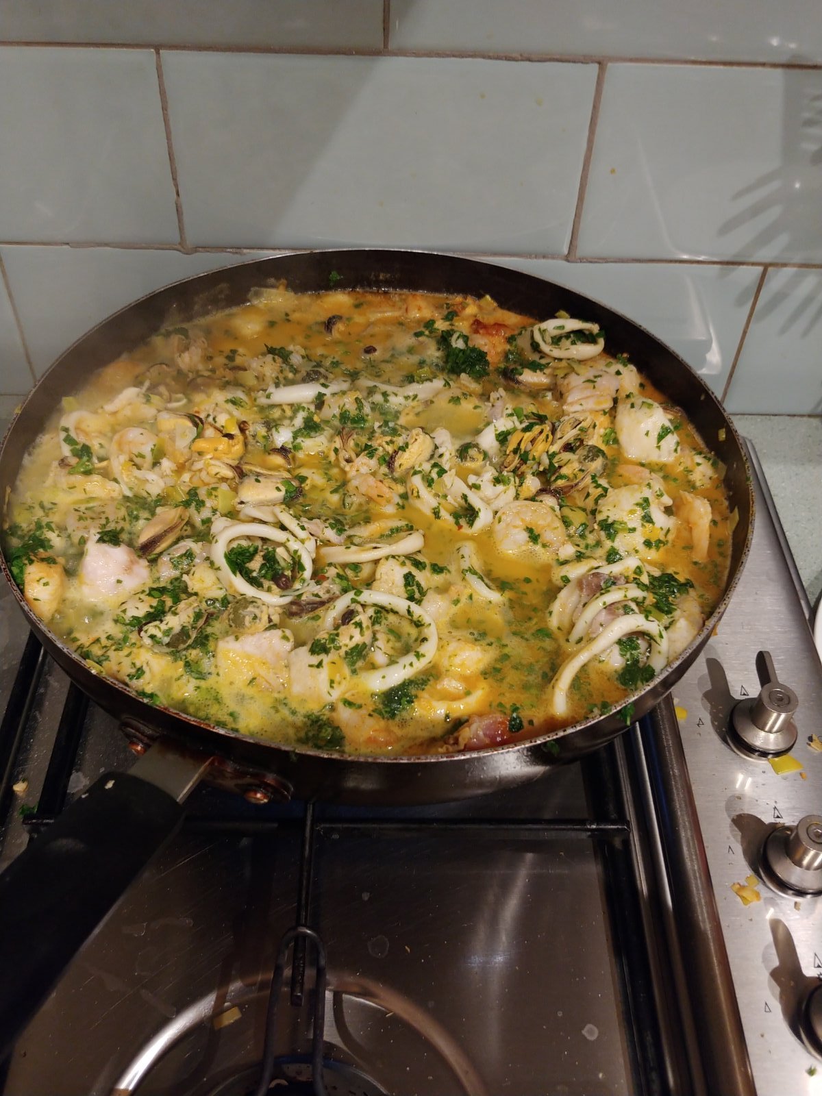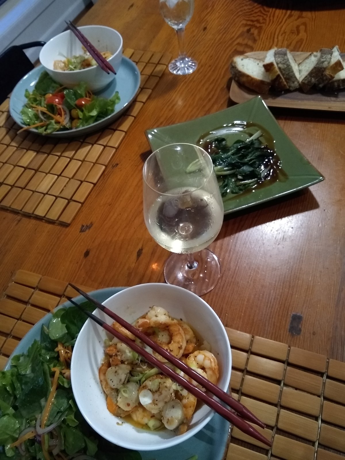 Was so good that I made it again but the schoolies went at smoko today and I shared none of them? so it was the green prawns instead and the scallops.