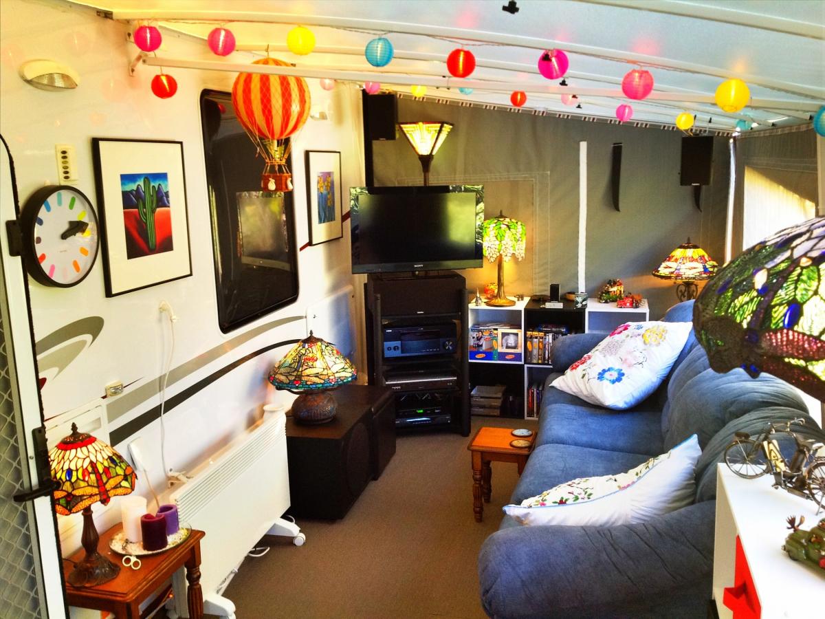 Hi guys, just thought I'd share with you my newly completed system in my home which is a 25 foot Caravan, with a deck built outside for the annex. Due to some unfortunate life changing events in 2010, I had to sell my house, and bought the caravan for a place to stay, and believe it or not, was one of the best decisions I've ever made, financially and lifestyle. And no, I don't live in a caranvan park, but on the driveway of a home in a very very nice part of Canberra.