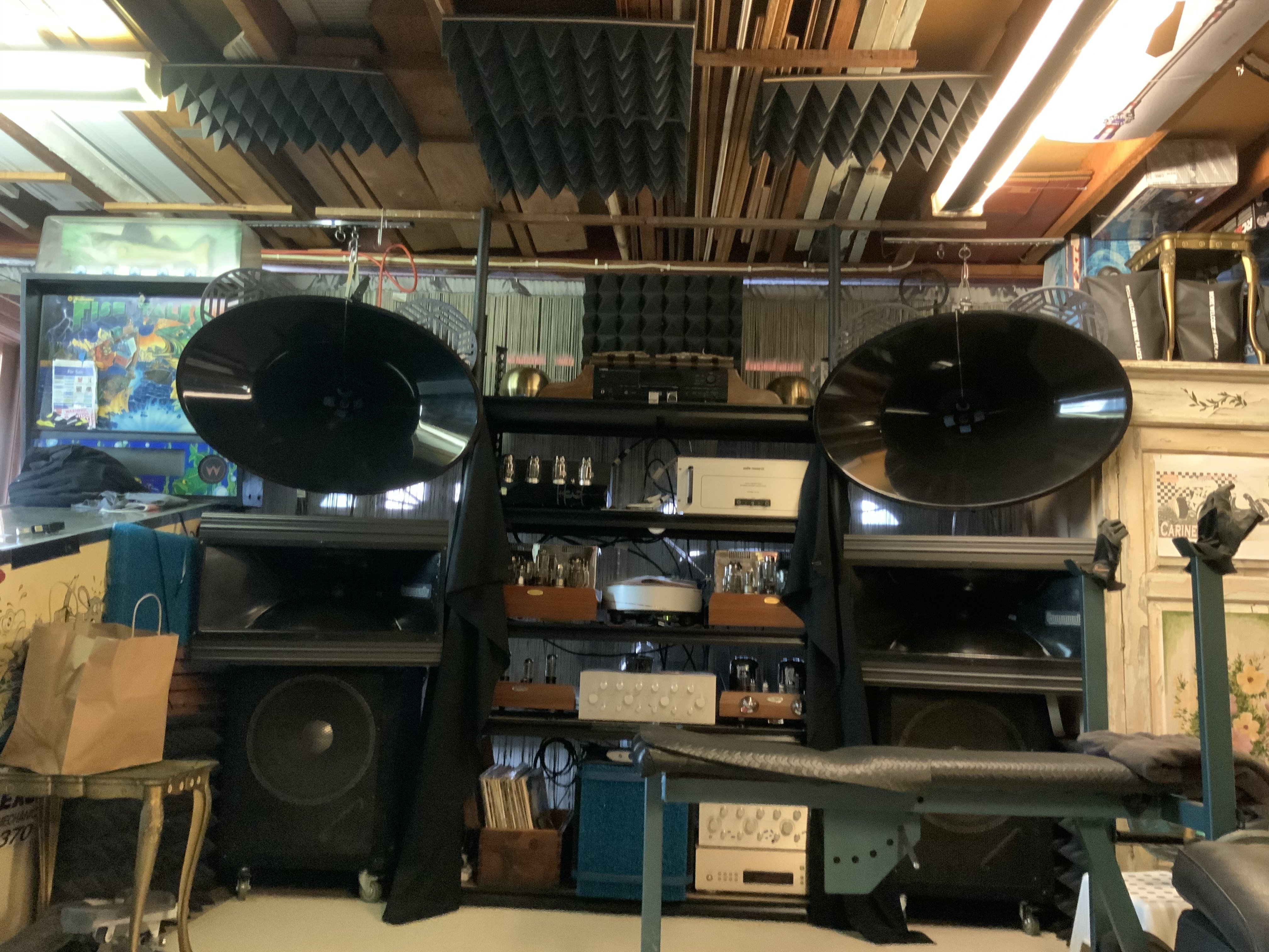 Big horns in small rooms work. Don’t sound like ‘horns’, Just sounds ‘real’. Effortless presentation.  Full engaging presentation at low volumes.   Bass horns play a bit part in this.   Enjoy the video!