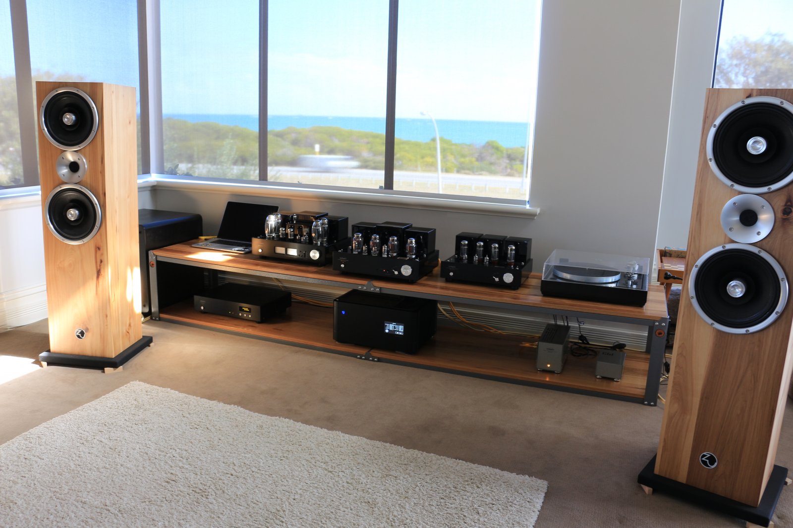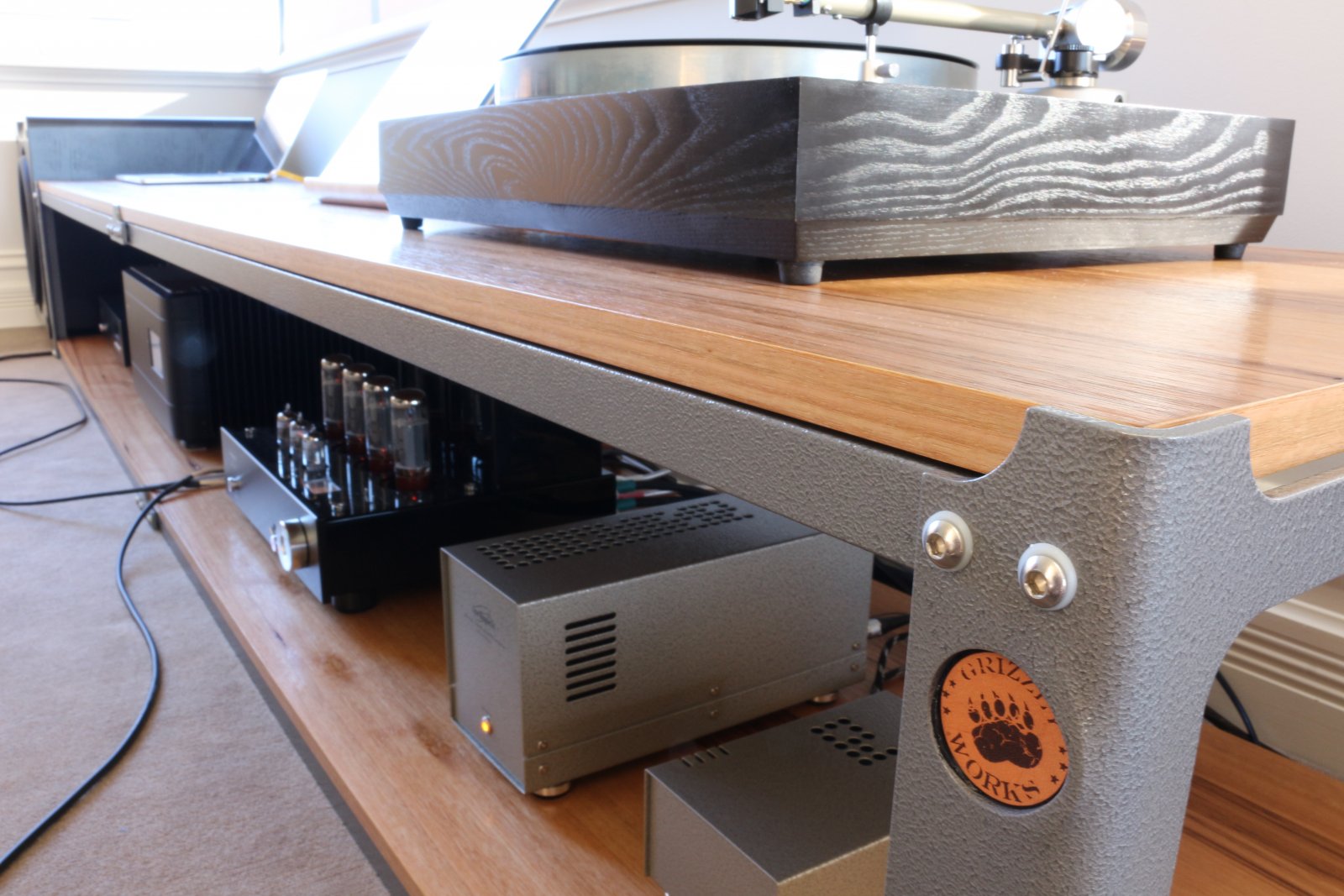 Note the improved "jenga" speaker supports. Much better than the frankly industrial Zu Audio spikes, though not a permanent solution.