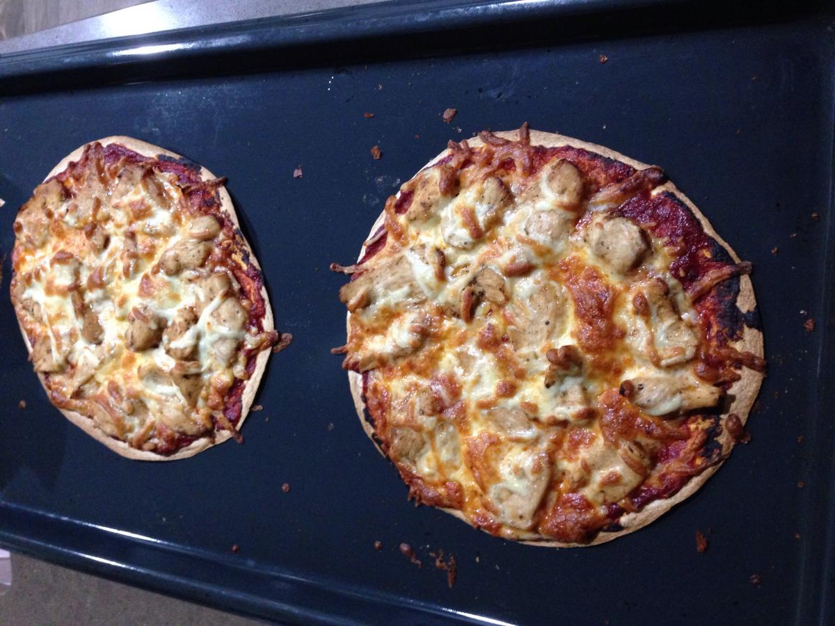 Just finished a chicken Ceasar salad pizza.