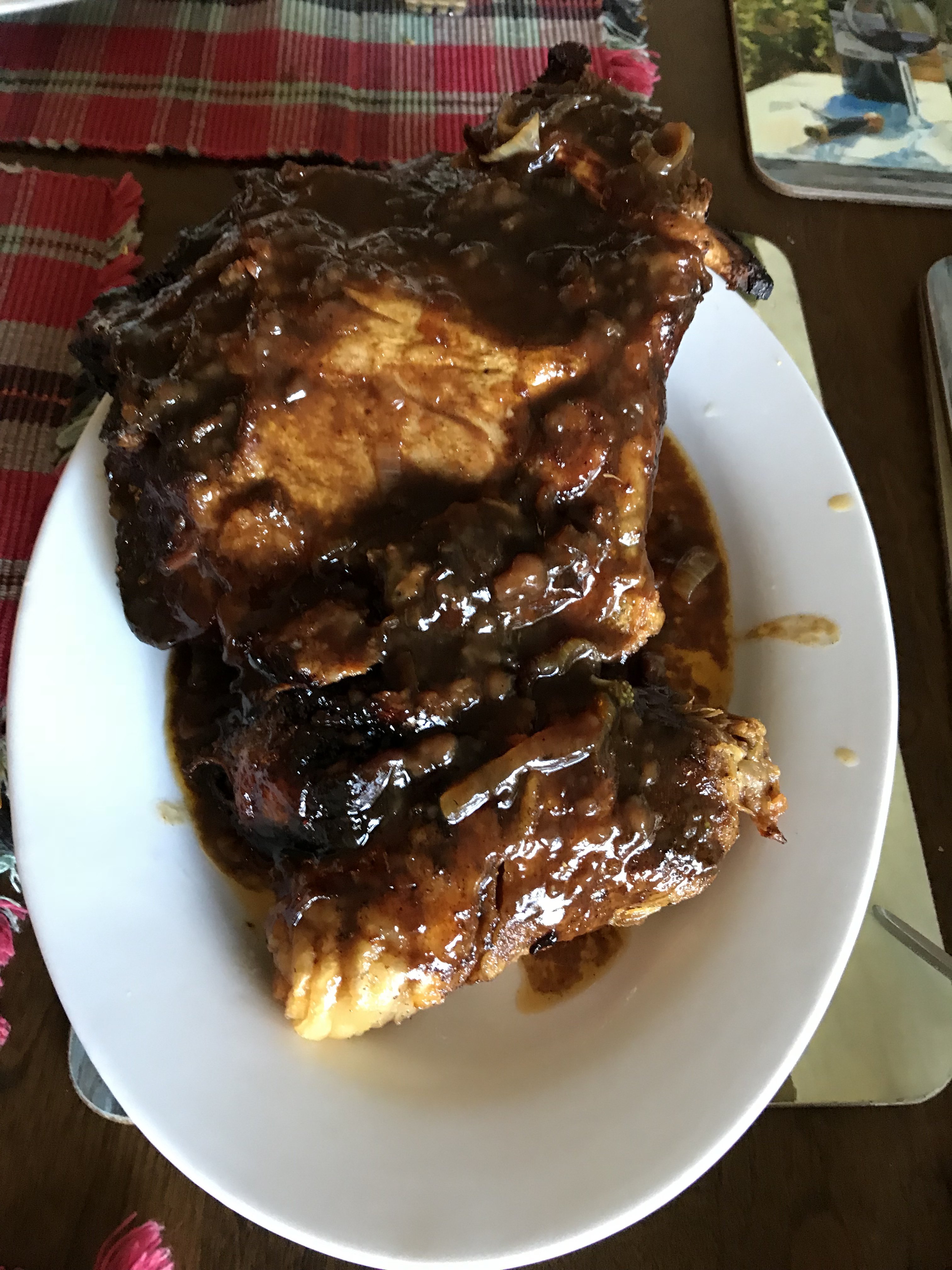 5.    Add vinegar and water to the dish, cover with foil and bake for 2 hours.