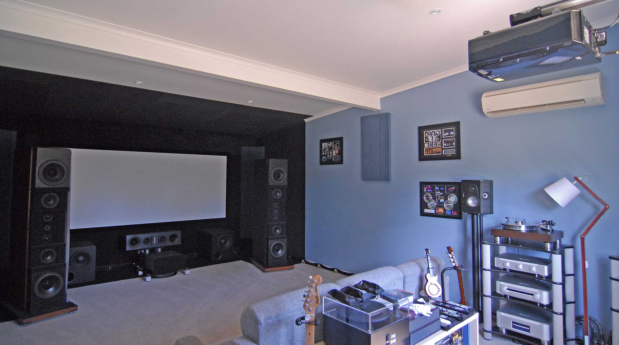 ps the other one to look out for is the wall right behind your listening position as it tends to reflect back onto the screen. way to check this is with a fade to black. pause and then using a little pen torch trace light on the back wall and see how much it impacts with reflecting back on the screen. can be quite telling. and in your dedicated room obviously will have the latitude to do things about :)
