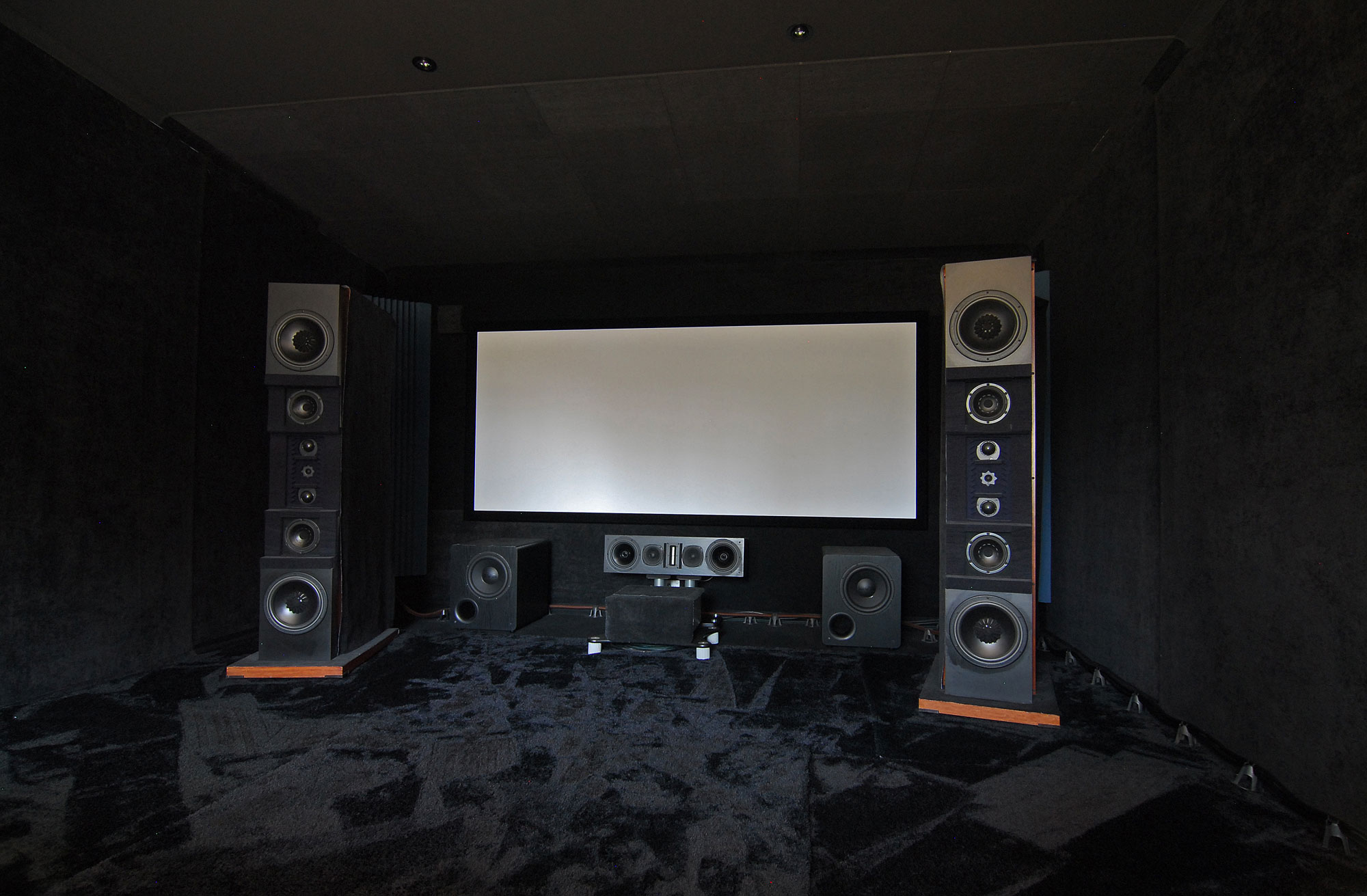 Blacked out the entire "Front" Ceiling section. Added Black carpet to the lower front section... Much Much better, almost no extraneous reflections now. The difference this has made to Contrast and Colour is dramatic.